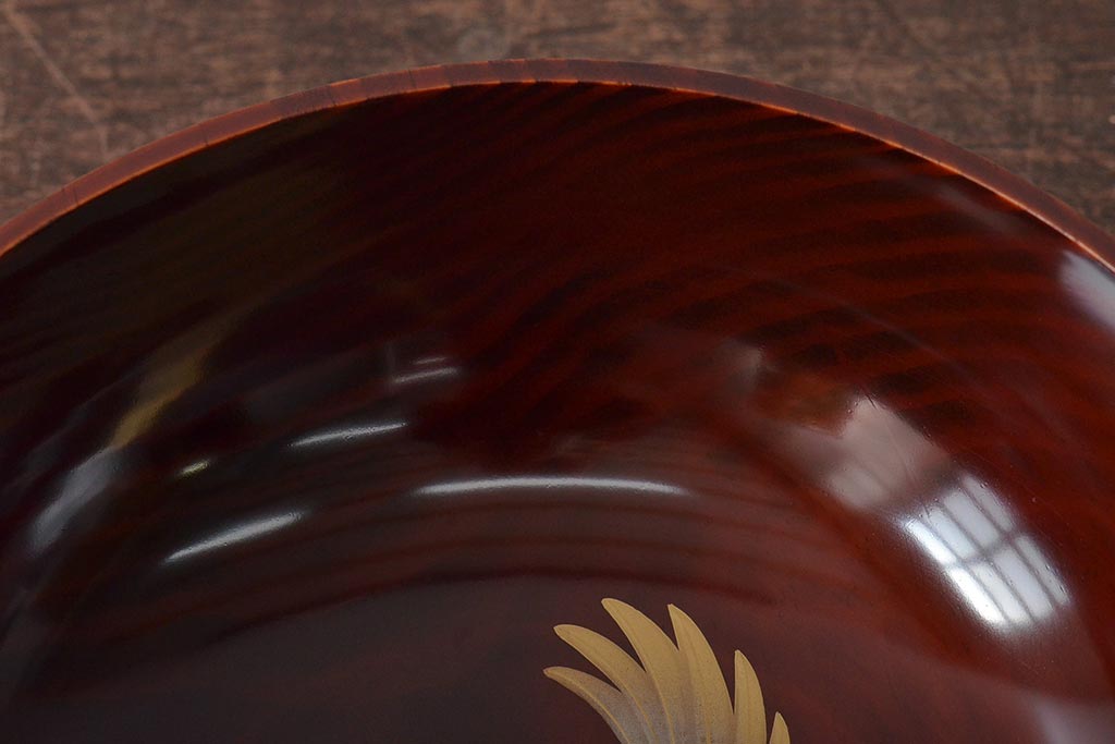 ラフジュ工房> 骨董・美術品> 骨董-漆器 > アンティーク雑貨 昭和初期 鶴蒔絵 木製菓子器(漆器)(R-043460)