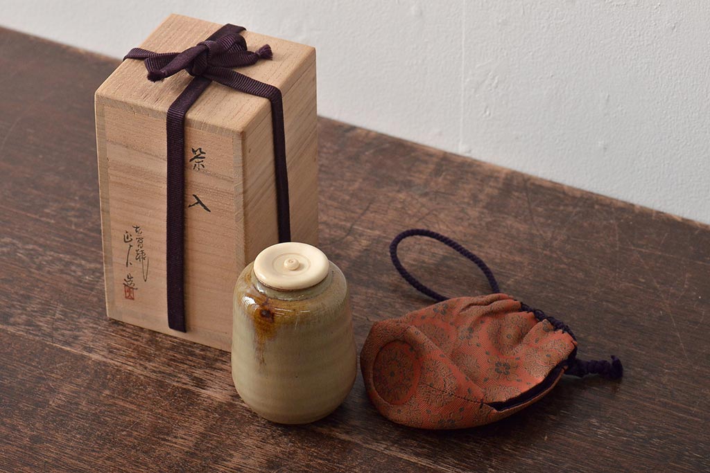 ラフジュ工房> 和食器・茶道具> 茶道具・鉄瓶 > 昭和期 赤膚焼 大塩正人造 茶入(茶道具、共箱)(R-043406)