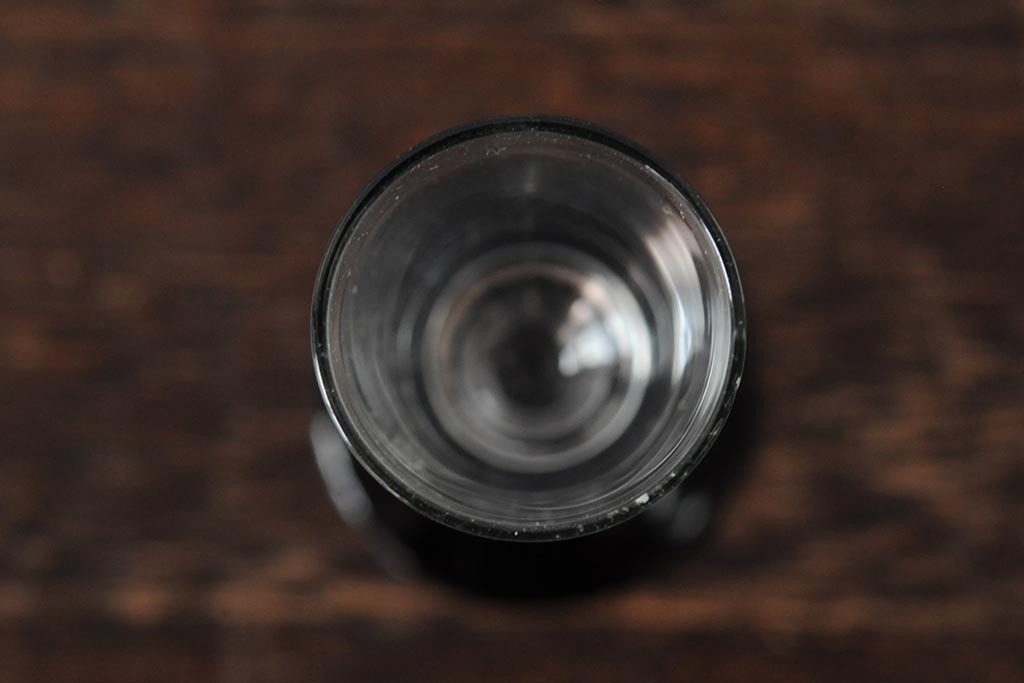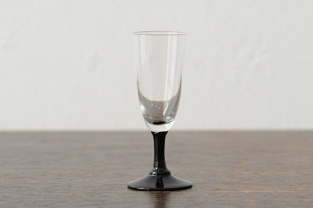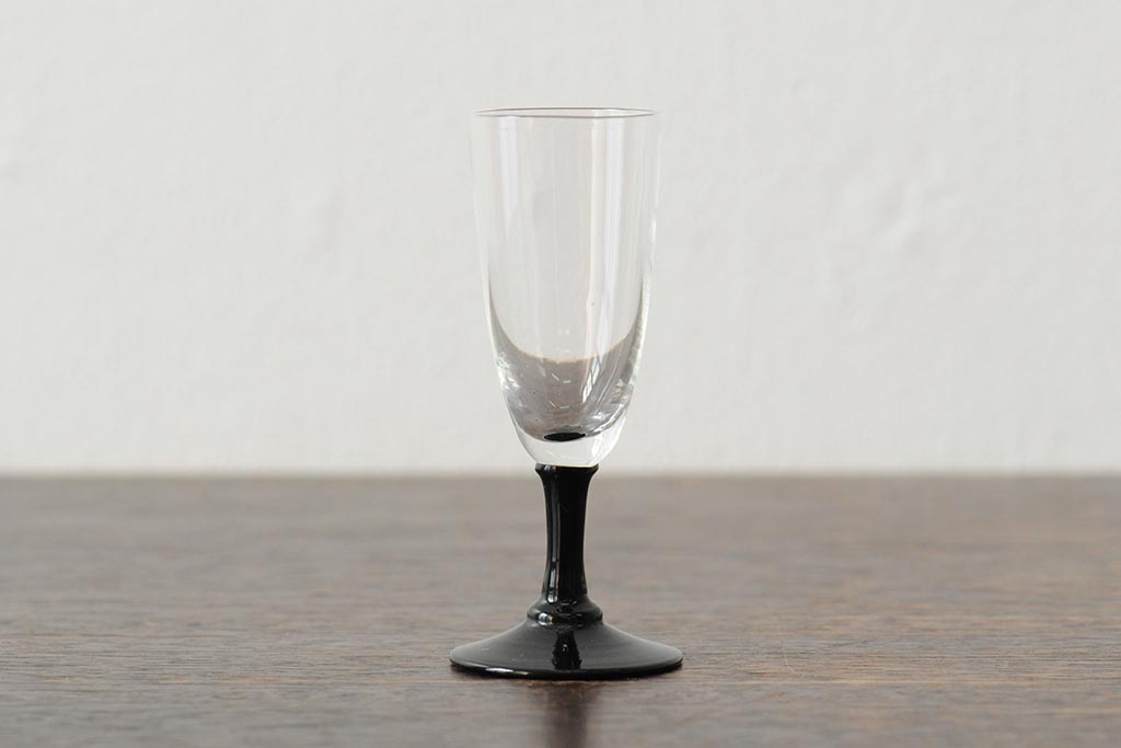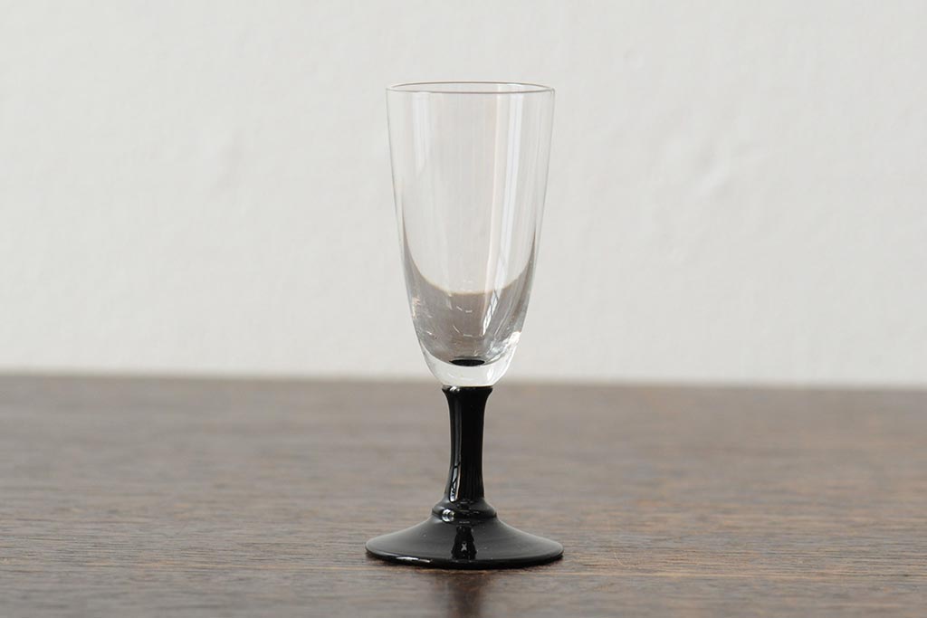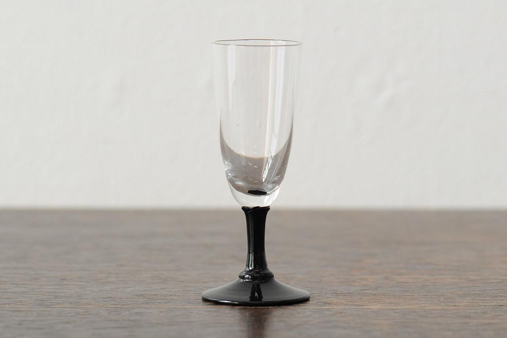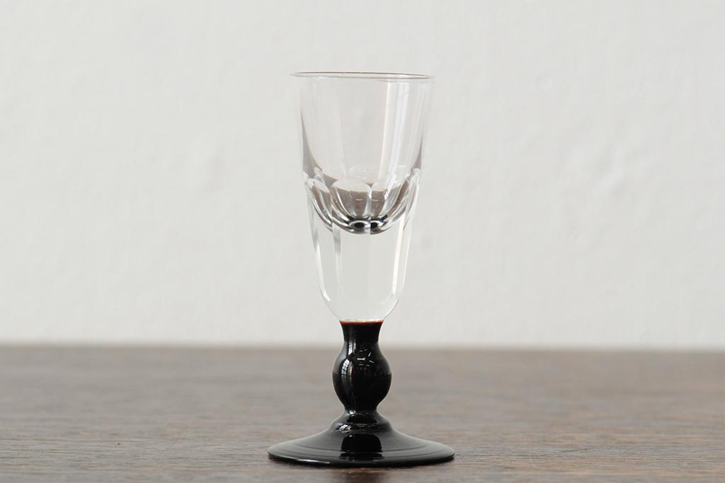 ラフジュ工房> 骨董・美術品> 骨董-ガラス食器 > 大正期 黒エナメル足 リキュールグラス3客セット(和ガラス、酒器)(R-043728)