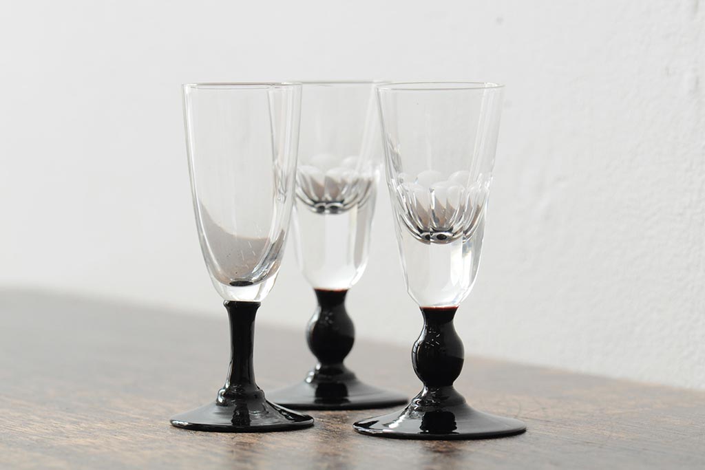ラフジュ工房> 和食器・茶道具 > 大正期 黒エナメル足 リキュールグラス3客セット(和ガラス、酒器)(R-043728)