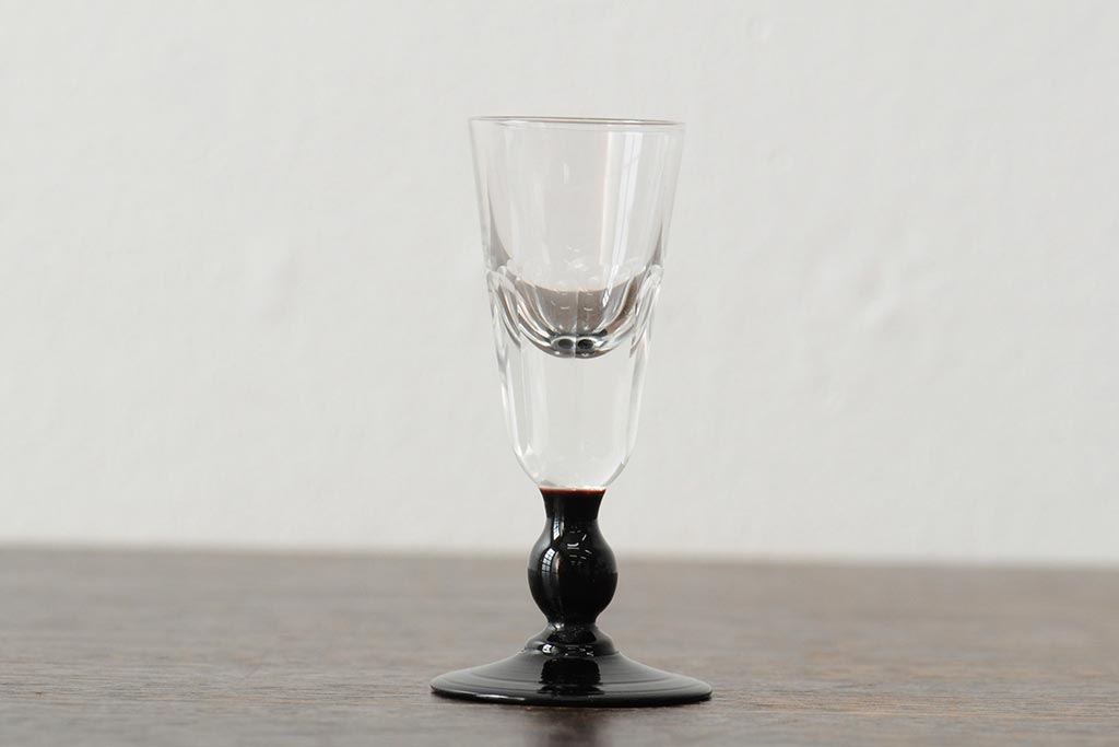 ラフジュ工房> 和食器・茶道具> 酒器 > 大正期 黒エナメル足 リキュールグラス3客セット(和ガラス、酒器)(R-043728)