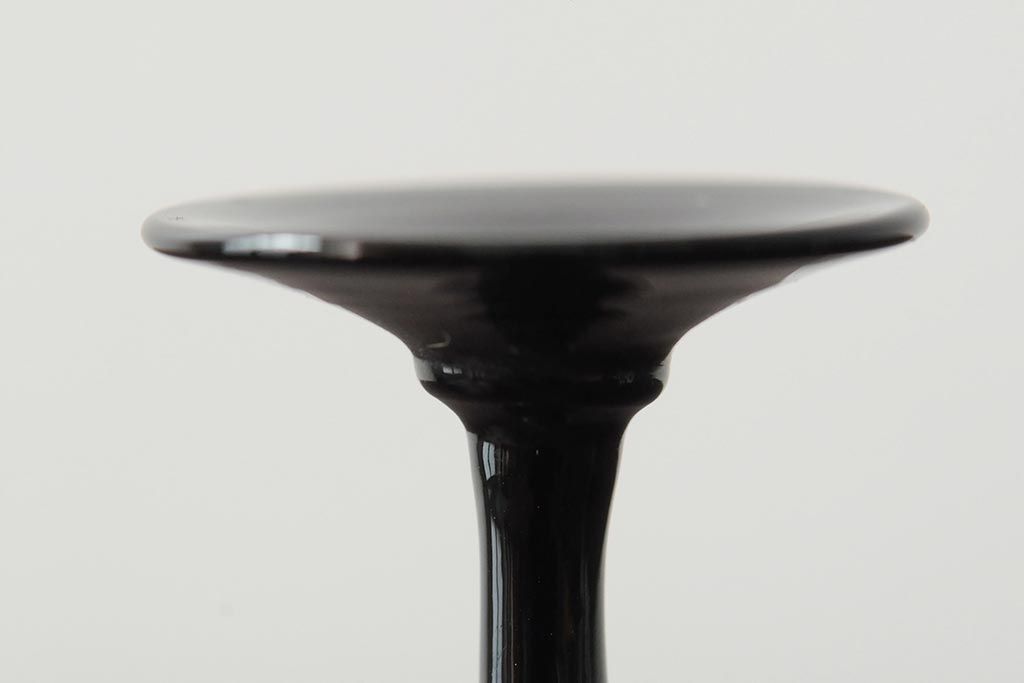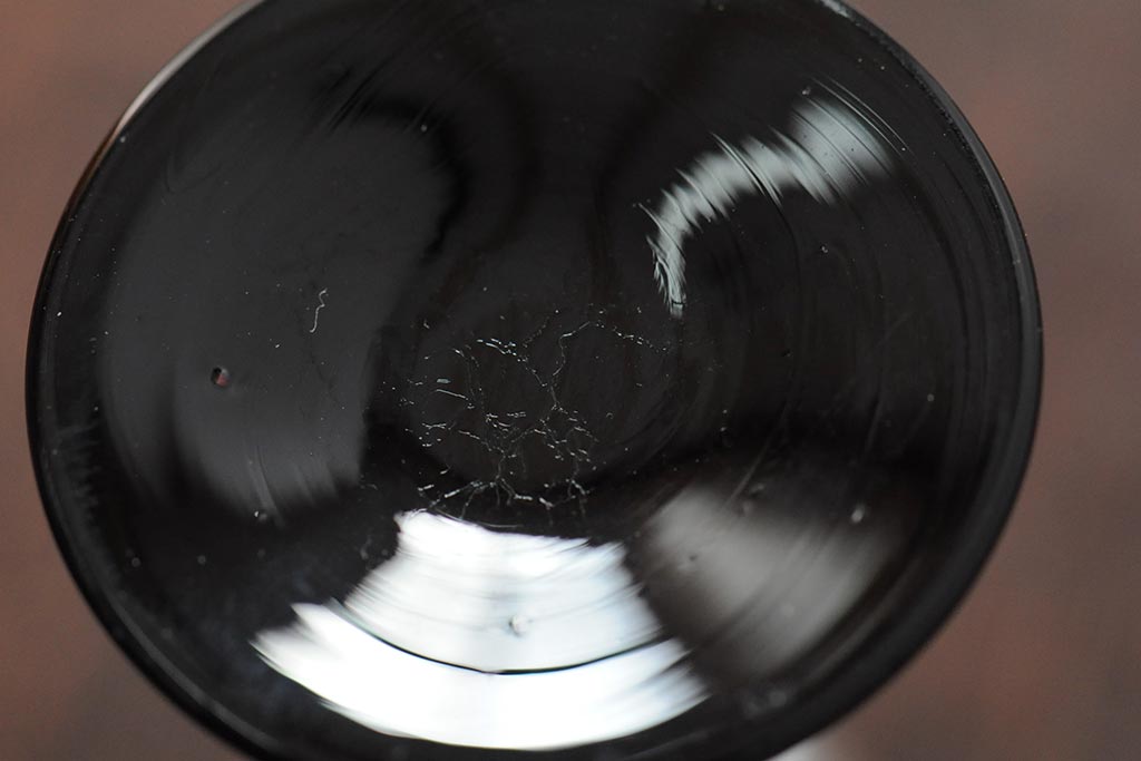 大正期 黒エナメル足 リキュールグラス3客セット(和ガラス、酒器)(R-043728)