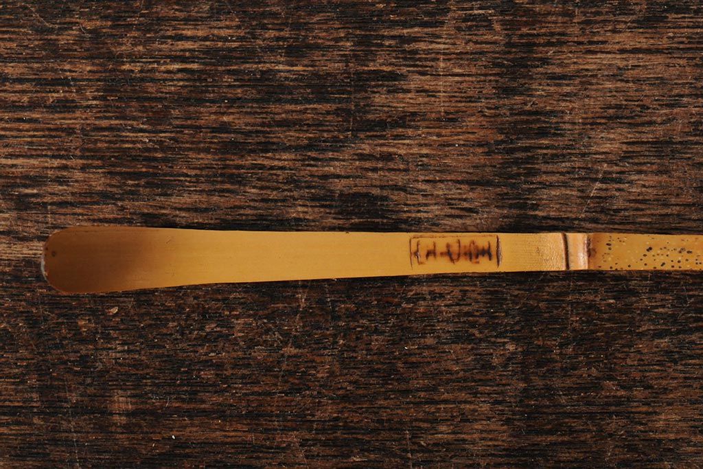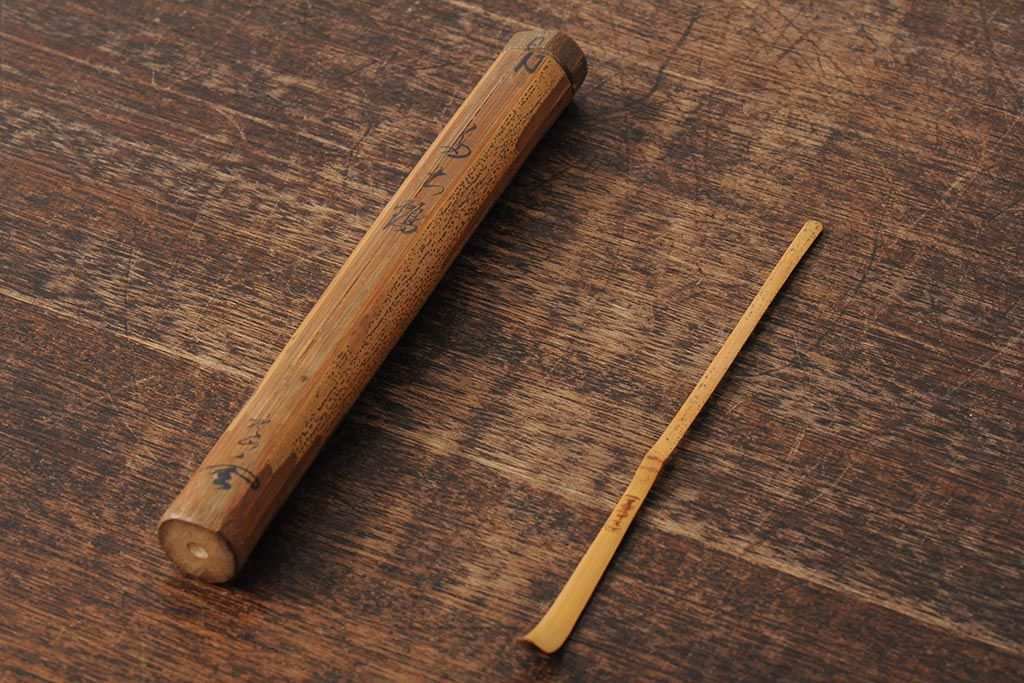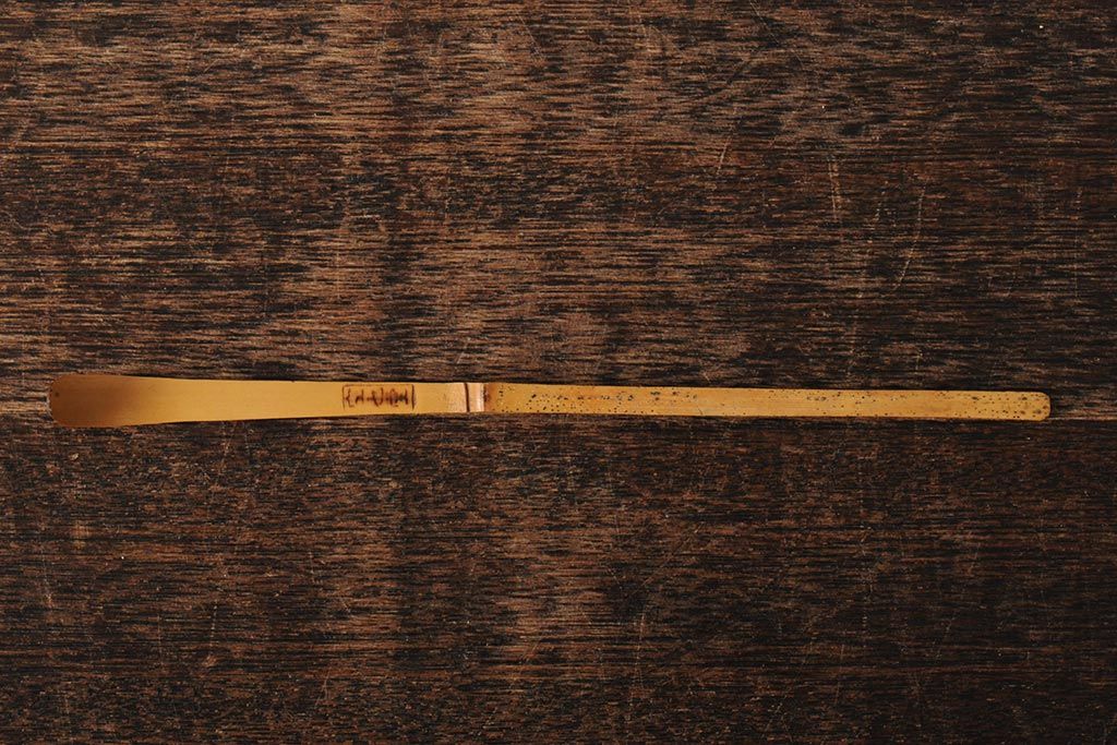 竹製 茶道具 古い時代茶杓(在銘、鶴)(R-043730)