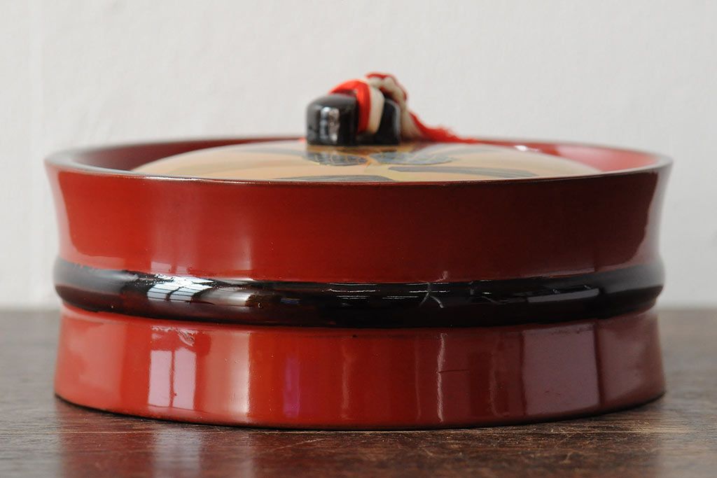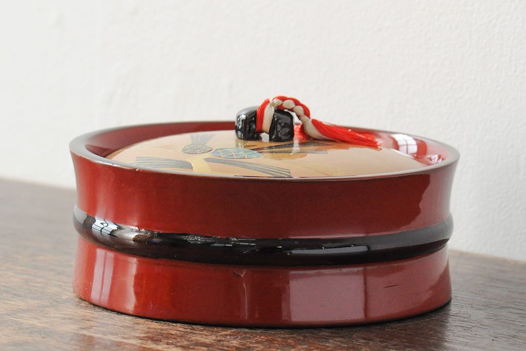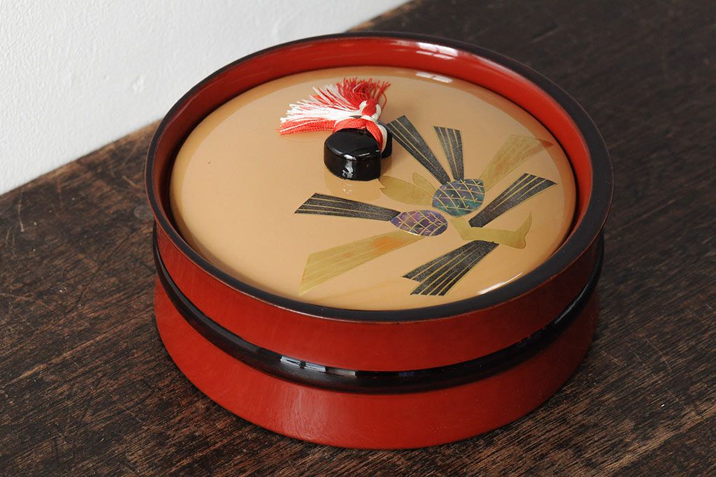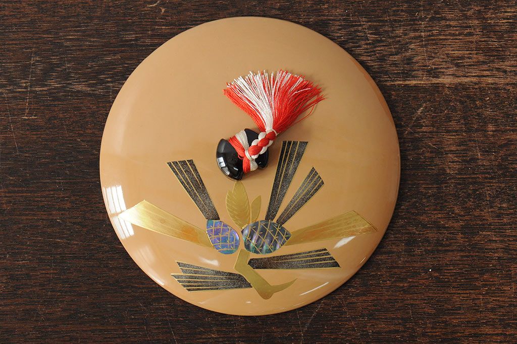 昭和初期 松ぼっくり 螺鈿金銀蒔絵 木製菓子鉢(漆器)(R-043915)