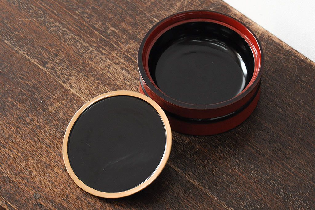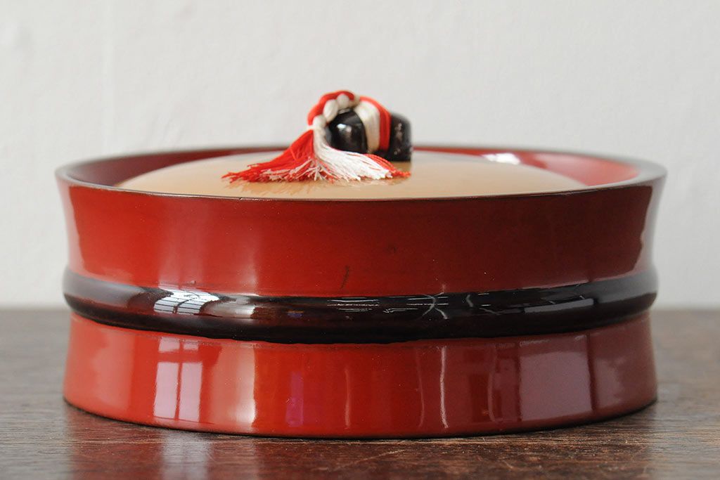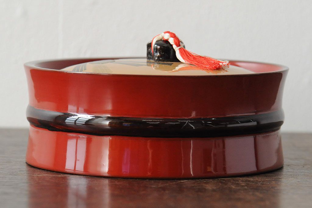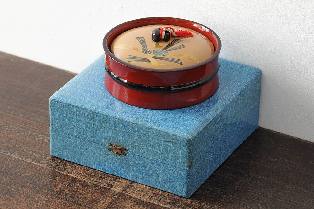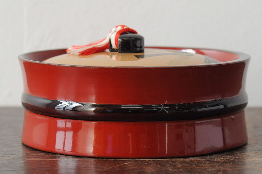 昭和初期 松ぼっくり 螺鈿金銀蒔絵 木製菓子鉢(漆器)(R-043915)