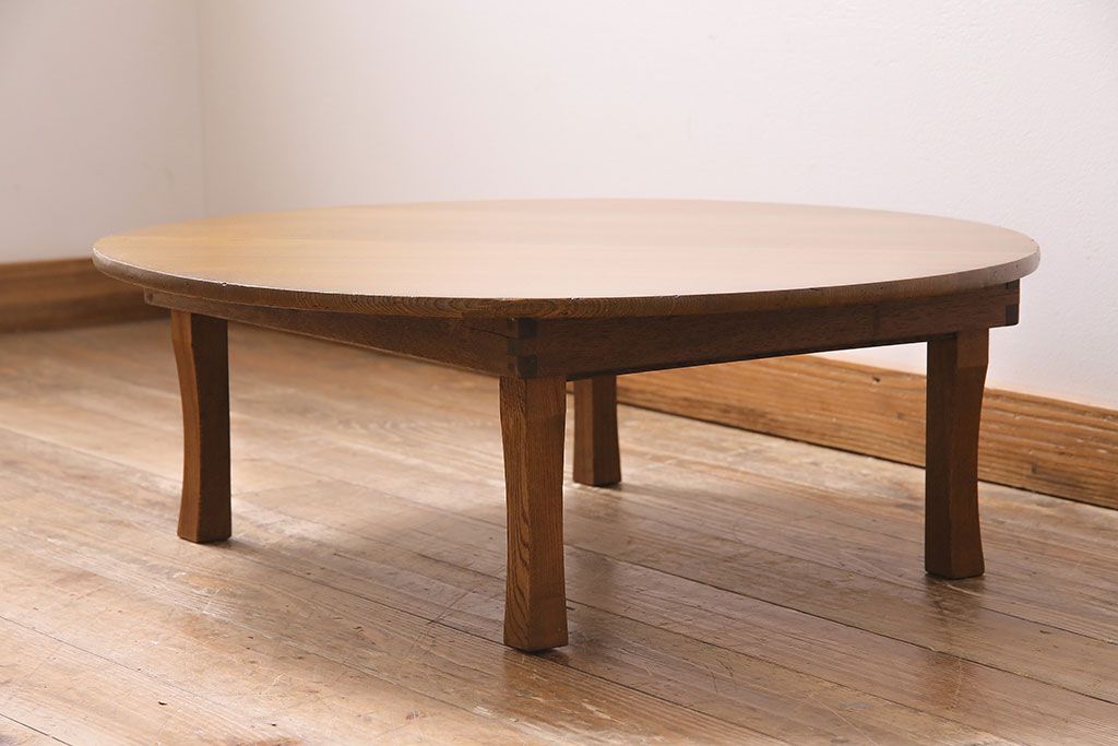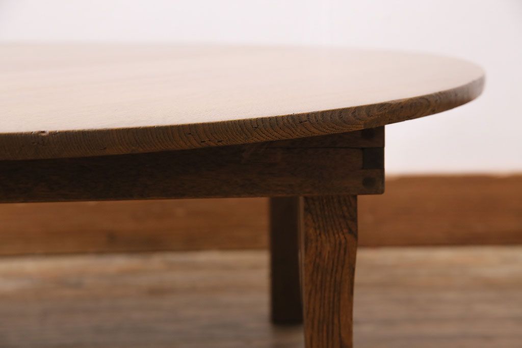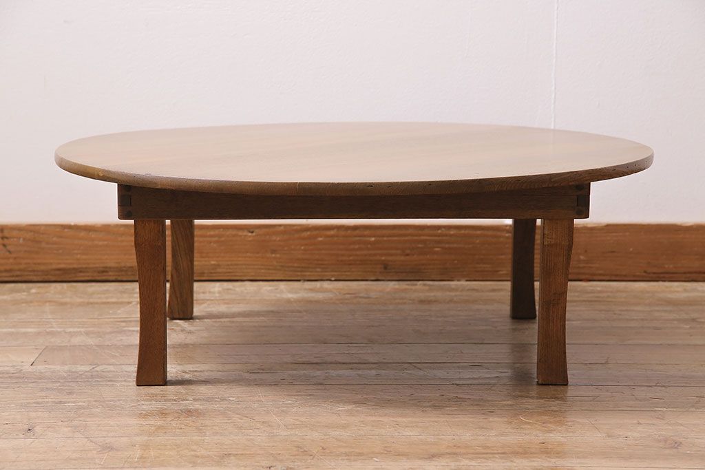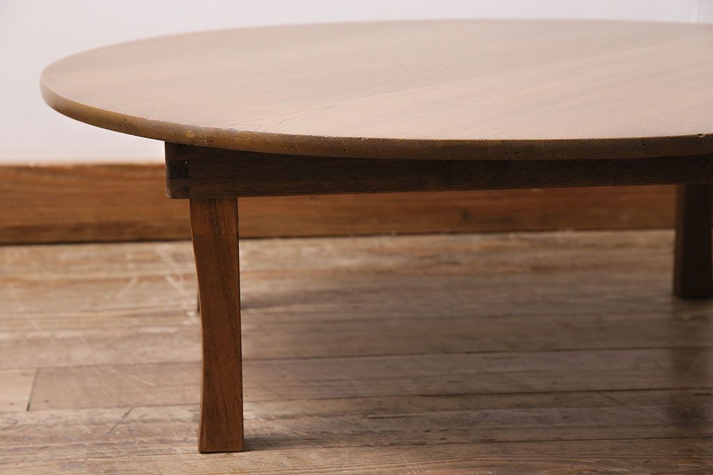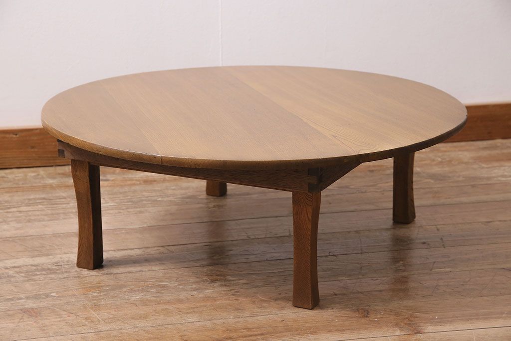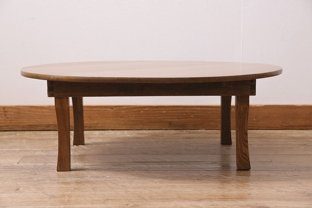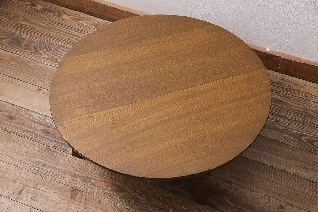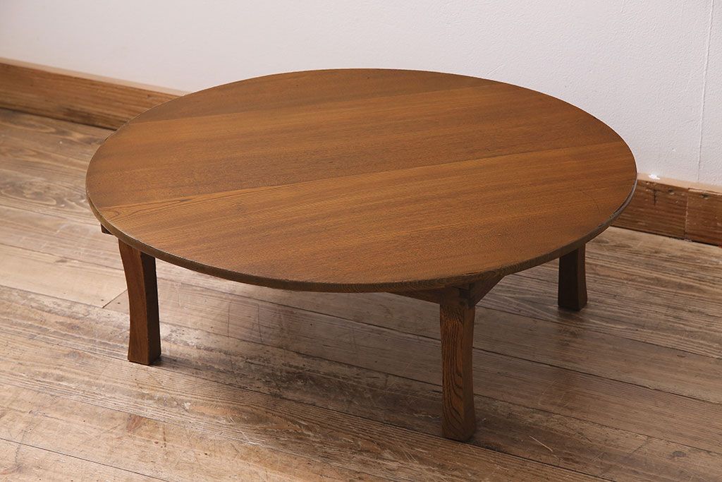 アンティーク家具 和製アンティーク 昭和初期 栓材 素朴なぬくもりが魅力のレトロな丸ちゃぶ台(座卓、ローテーブル、折り畳みテーブル)(R-044200)