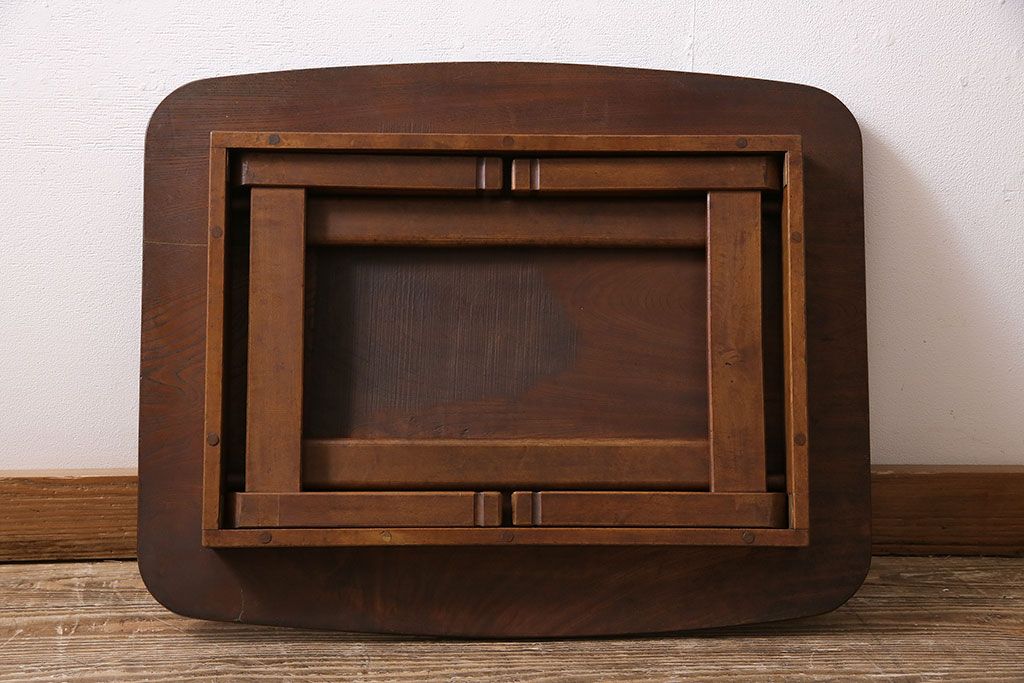 テーブル> おりたたみテーブル > アンティーク家具 和製アンティーク 昭和初期 天板ケヤキ一枚板 ぬくもり感じるレトロなちゃぶ台(座卓、ローテーブル、折り畳みテーブル)(R-044201)