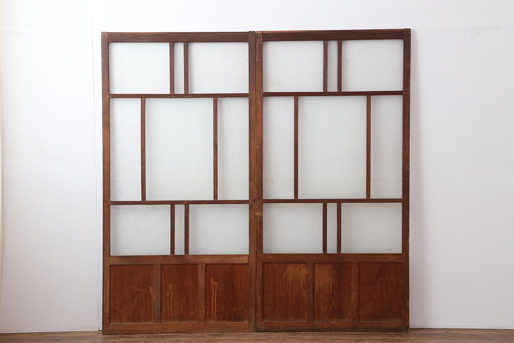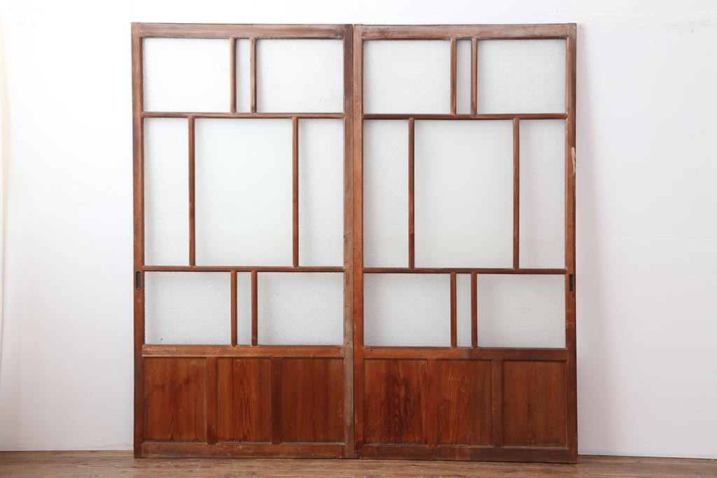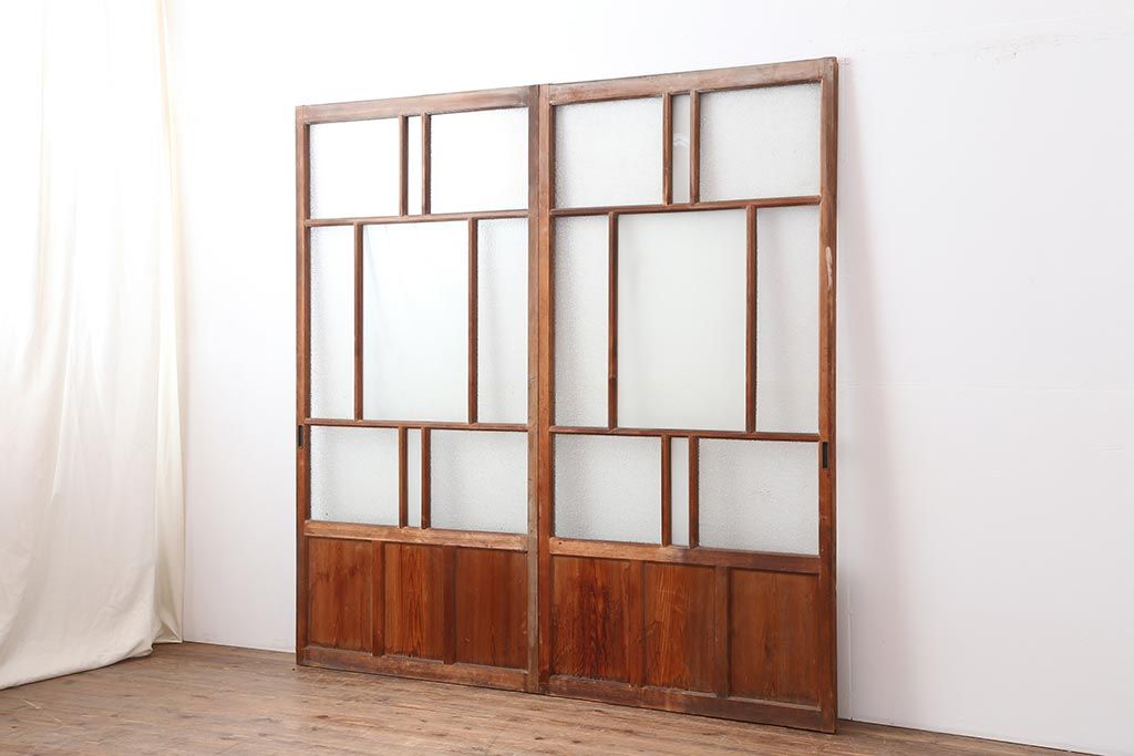ドア・建具> ガラス戸 > ビンテージ建具 和製ビンテージ 昭和初期 ダイヤガラス入り! レトロなガラス戸2枚セット(引き戸)(R-044165)