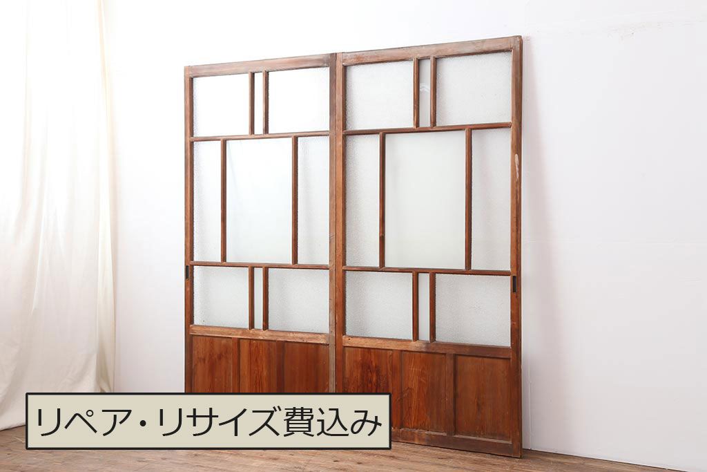 ビンテージ建具 和製ビンテージ 昭和初期 ダイヤガラス入り! レトロなガラス戸2枚セット(引き戸)(R-044165)