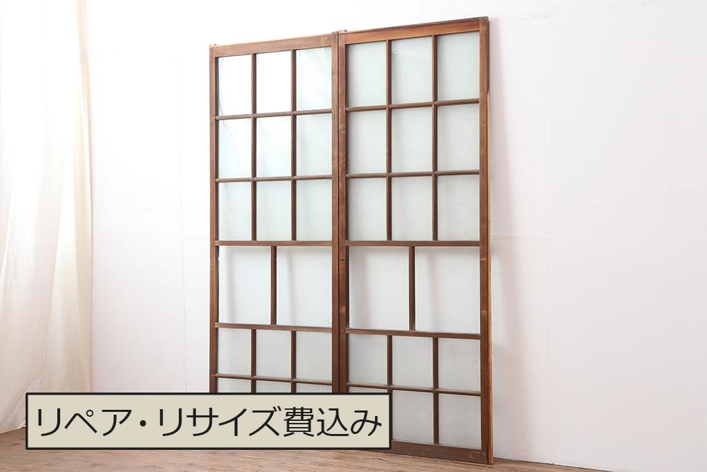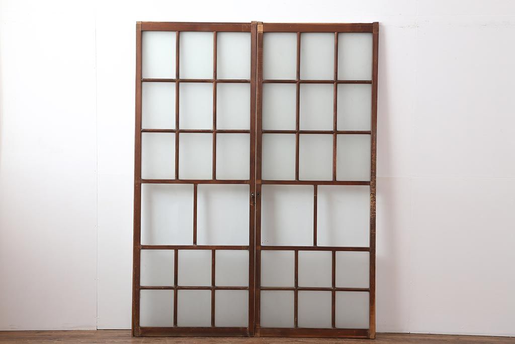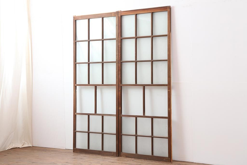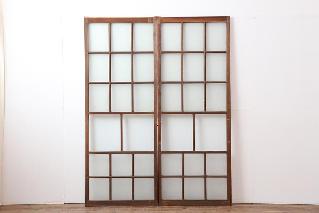 レトロ建具 和レトロ 昭和中期 味わいとシンプルさが魅力のガラス戸2枚セット(引き戸、建具)(R-044079)