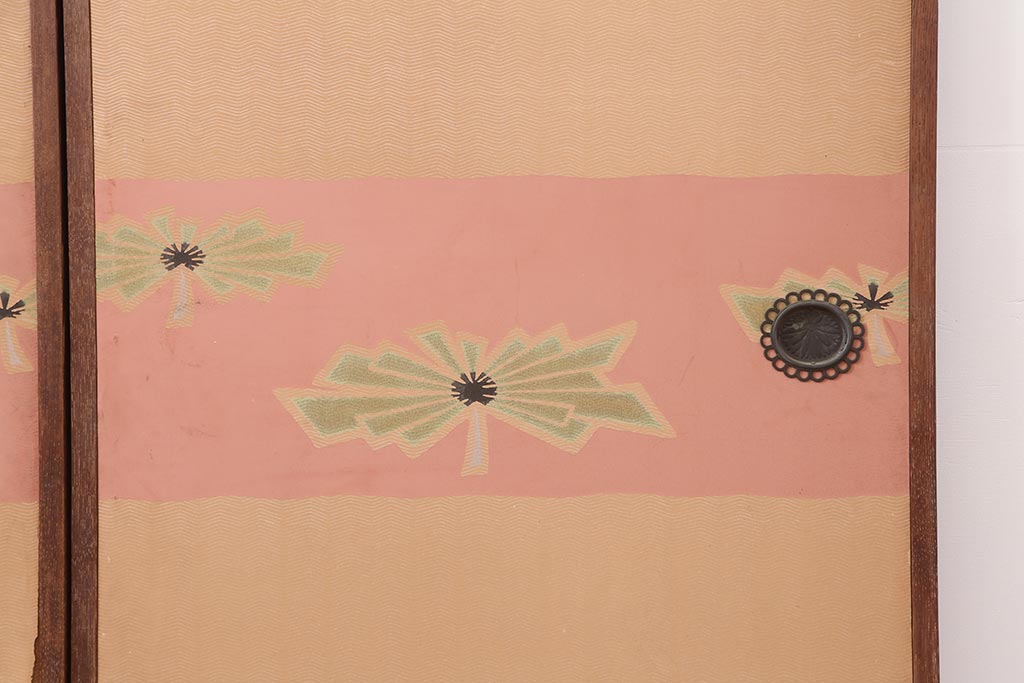 レトロ建具 昭和レトロ 桃色と花の意匠が愛らしいふすま4枚セット(建具、引き戸、仕切り戸)(R-044115)