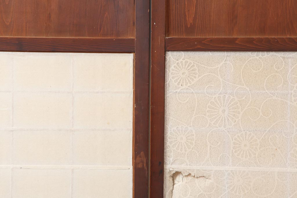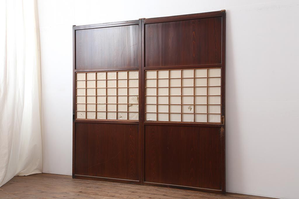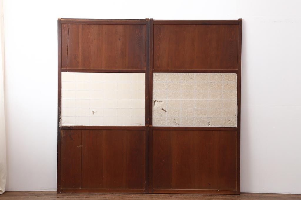 アンティーク建具 大正期 趣あふれる障子帯戸2枚セット(障子戸、格子戸、板戸、引き戸、建具)(R-044065)