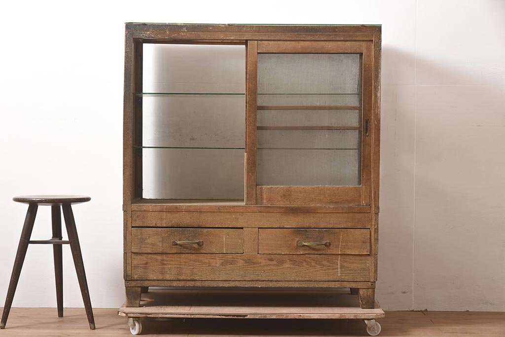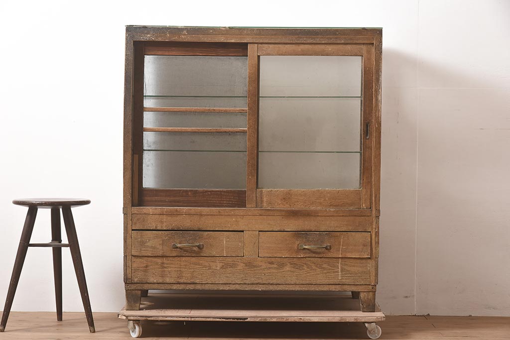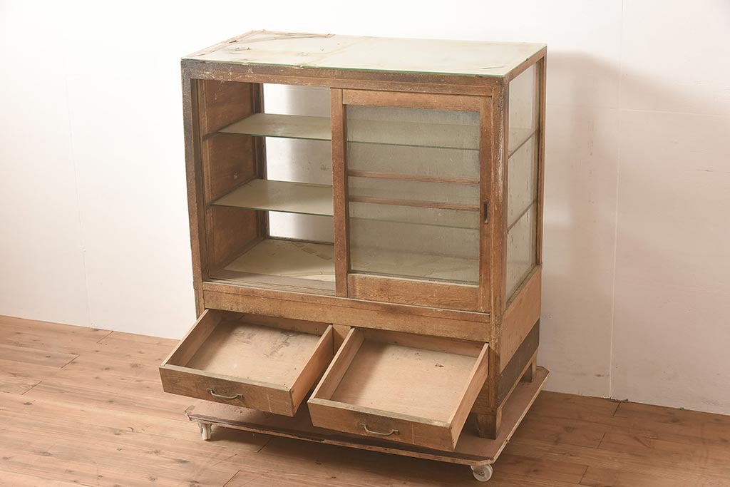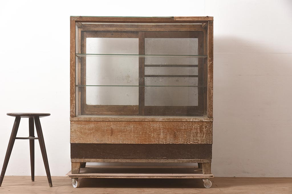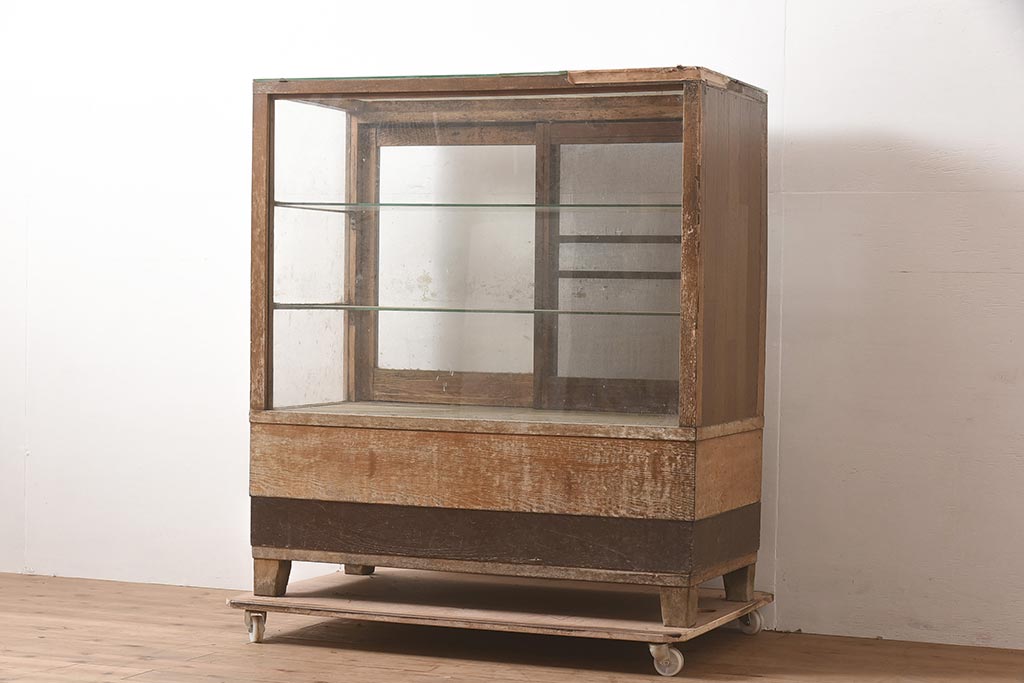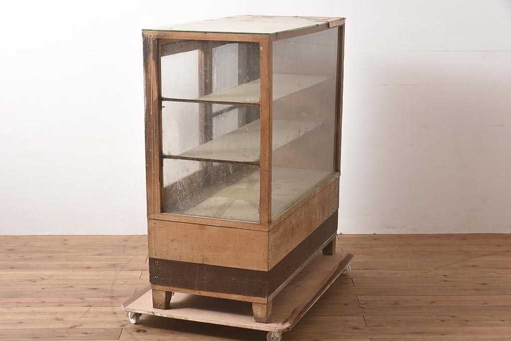 レトロ家具 昭和中期 ナラ材 昭和レトロな雰囲気たっぷりのガラスケース(ショーケース、陳列棚)(R-044036)です。