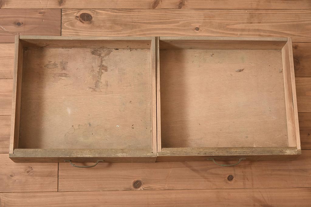 棚板は取り外しできます。棚板は2枚あります。棚受けは2ヶ所、195mmピッチで調整できます。棚幅サイズのものが1枚の作りです。