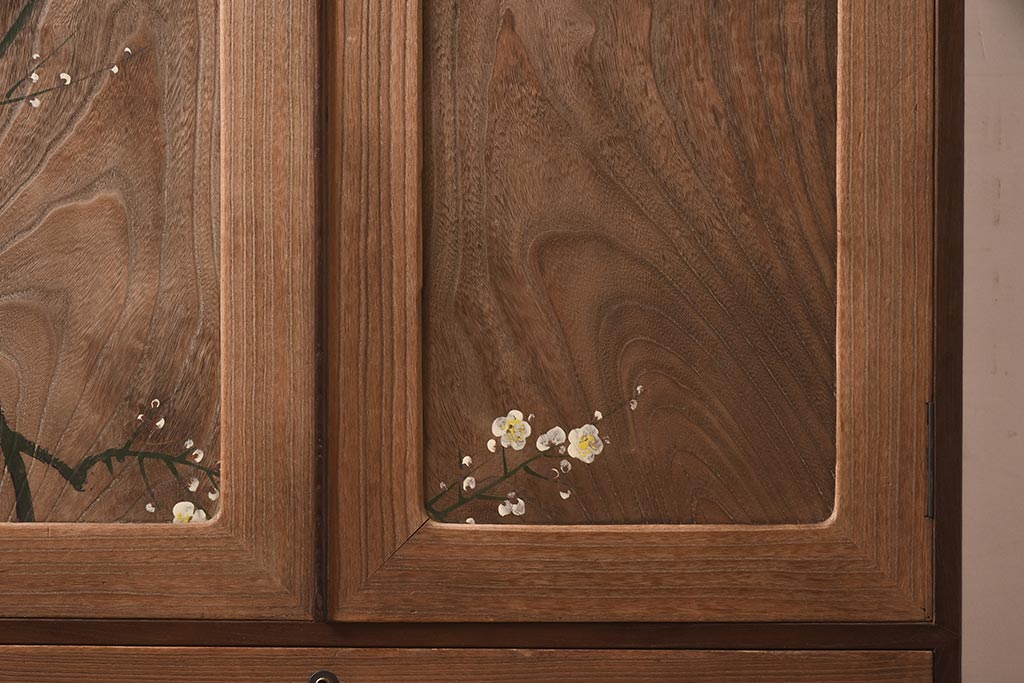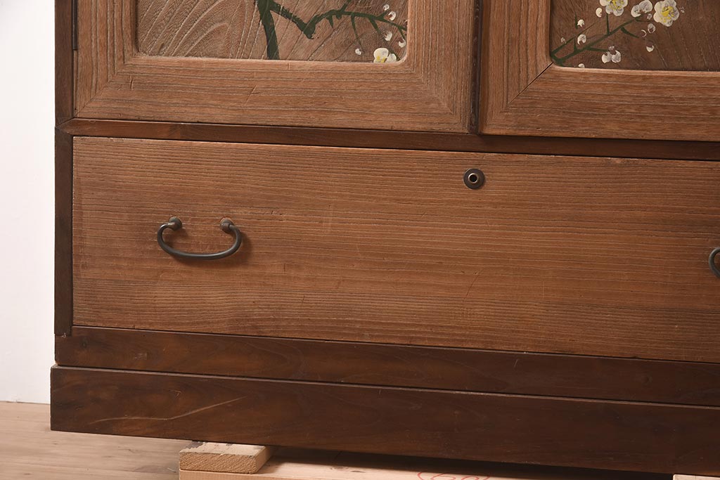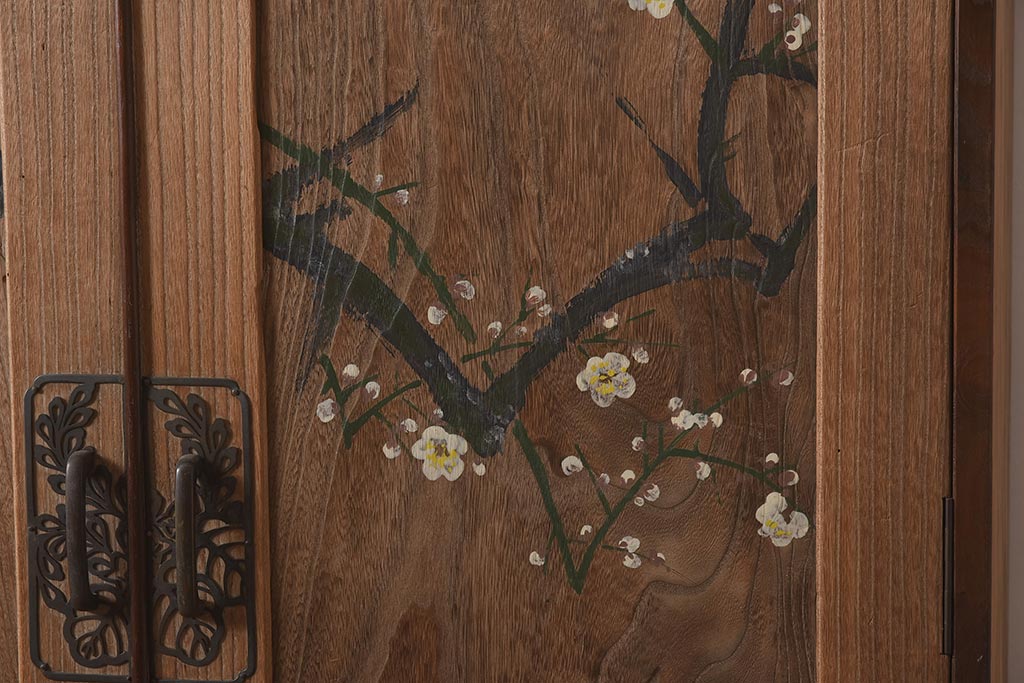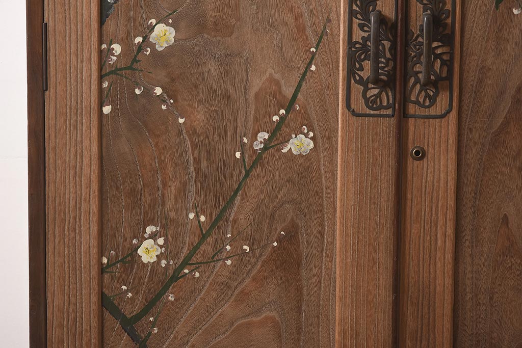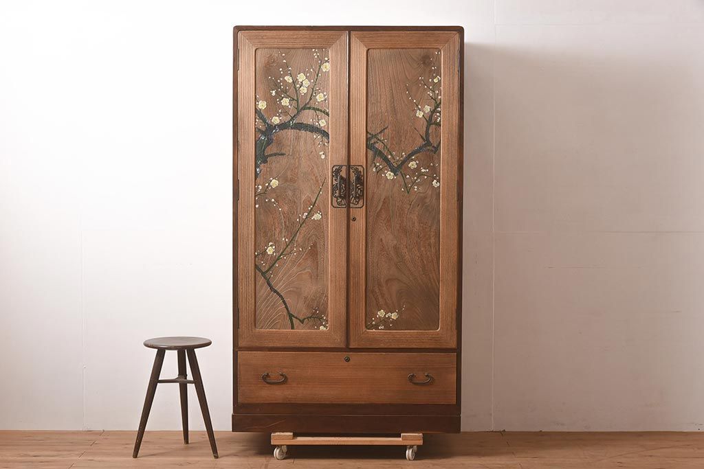 ビンテージ家具 昭和中期 総桐材・縁桑材 梅の図が目を引くワードローブ(洋服箪笥)(R-044035)