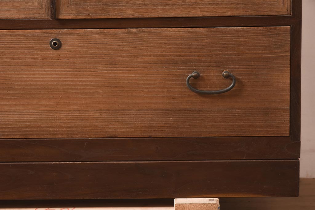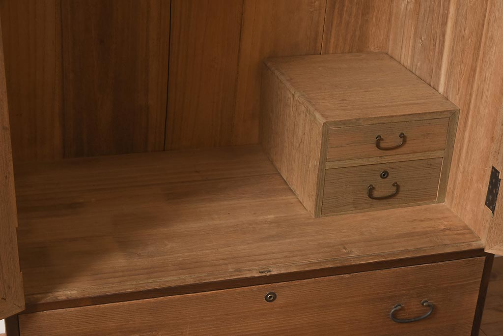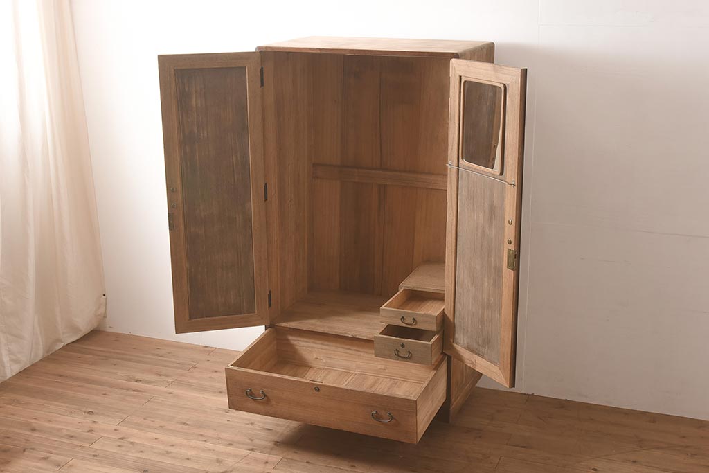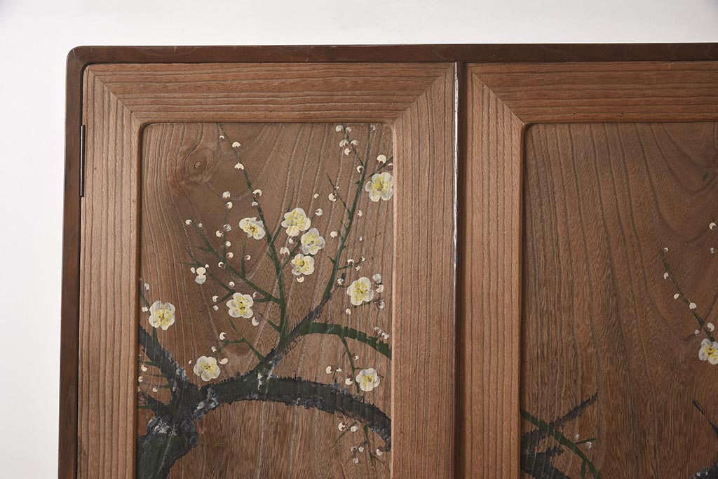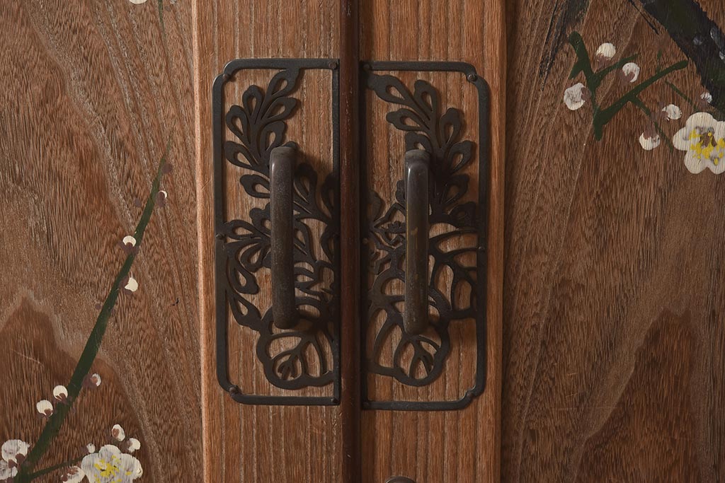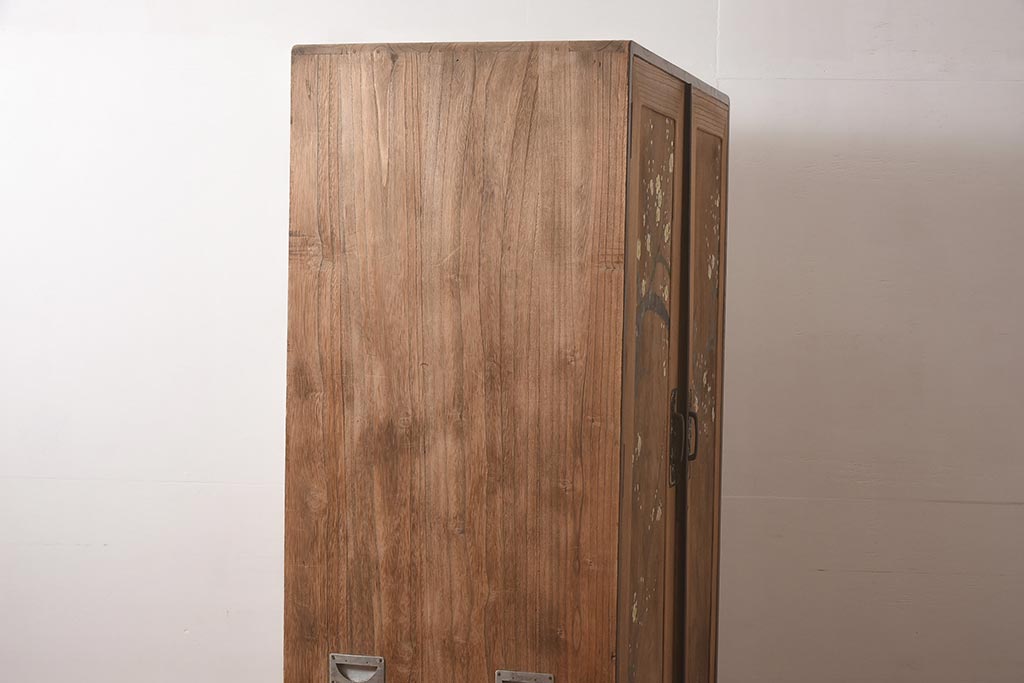 ビンテージ家具 昭和中期 総桐材・縁桑材 梅の図が目を引くワードローブ(洋服箪笥)(R-044035)
