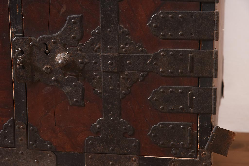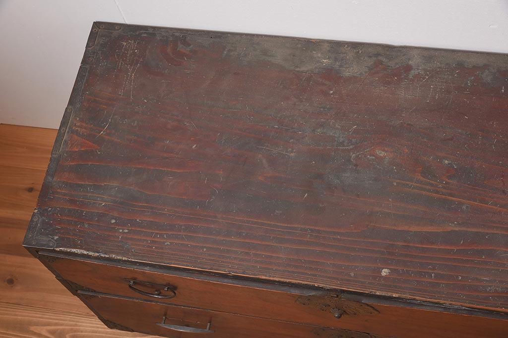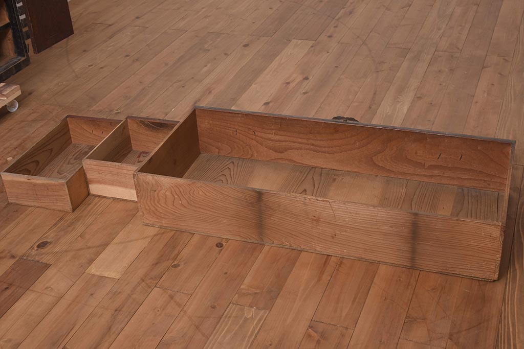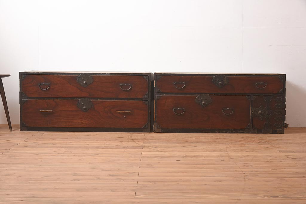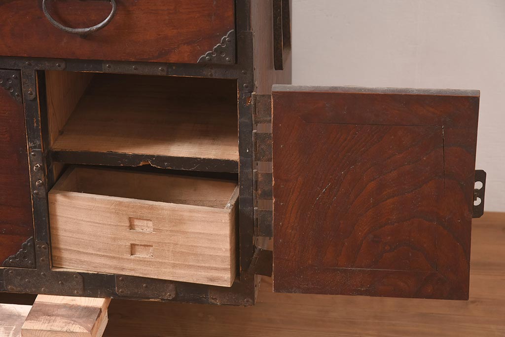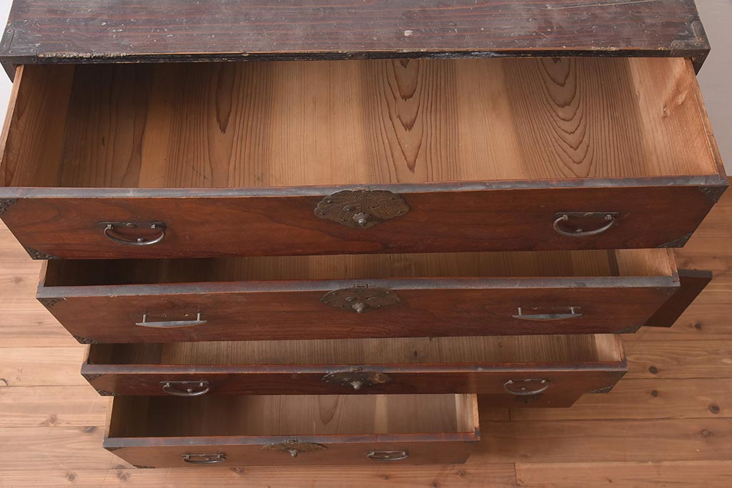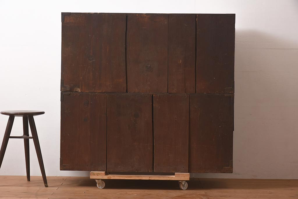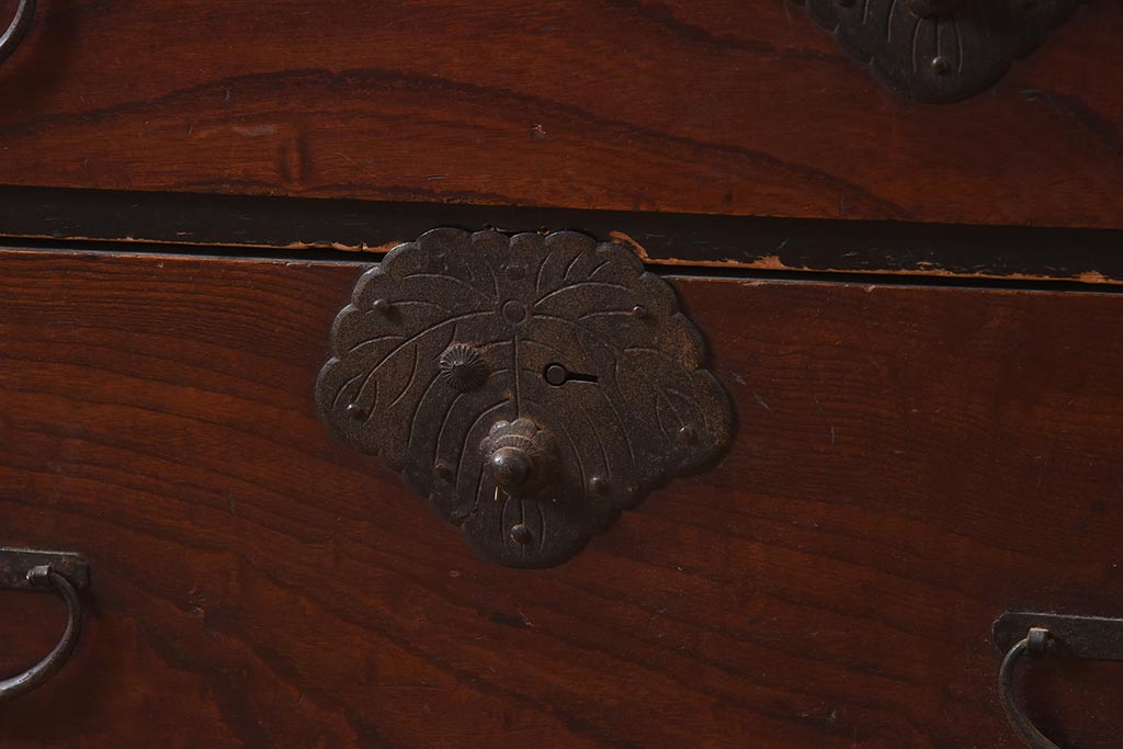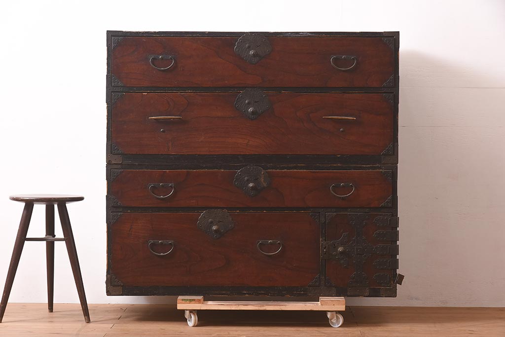 アンティーク家具 明治期 前面ケヤキ材 古い質感が味わい深い重ね箪笥(引き出し、衣装箪笥)(R-043600)