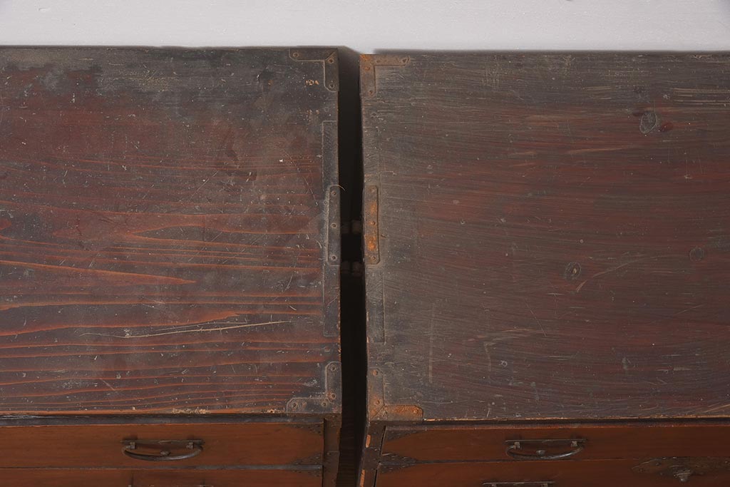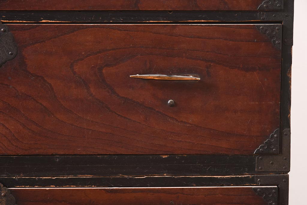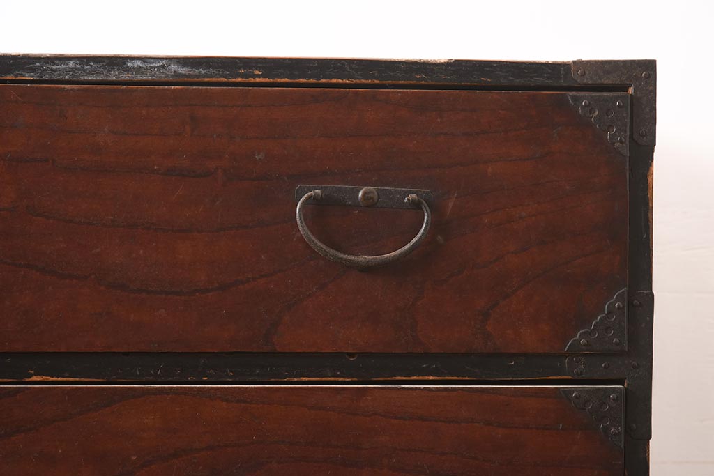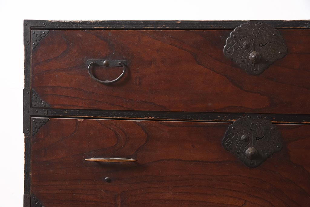 ラフジュ工房> 和箪笥 > アンティーク家具 明治期 前面ケヤキ材 古い質感が味わい深い重ね箪笥(引き出し、衣装箪笥)(R-043600)