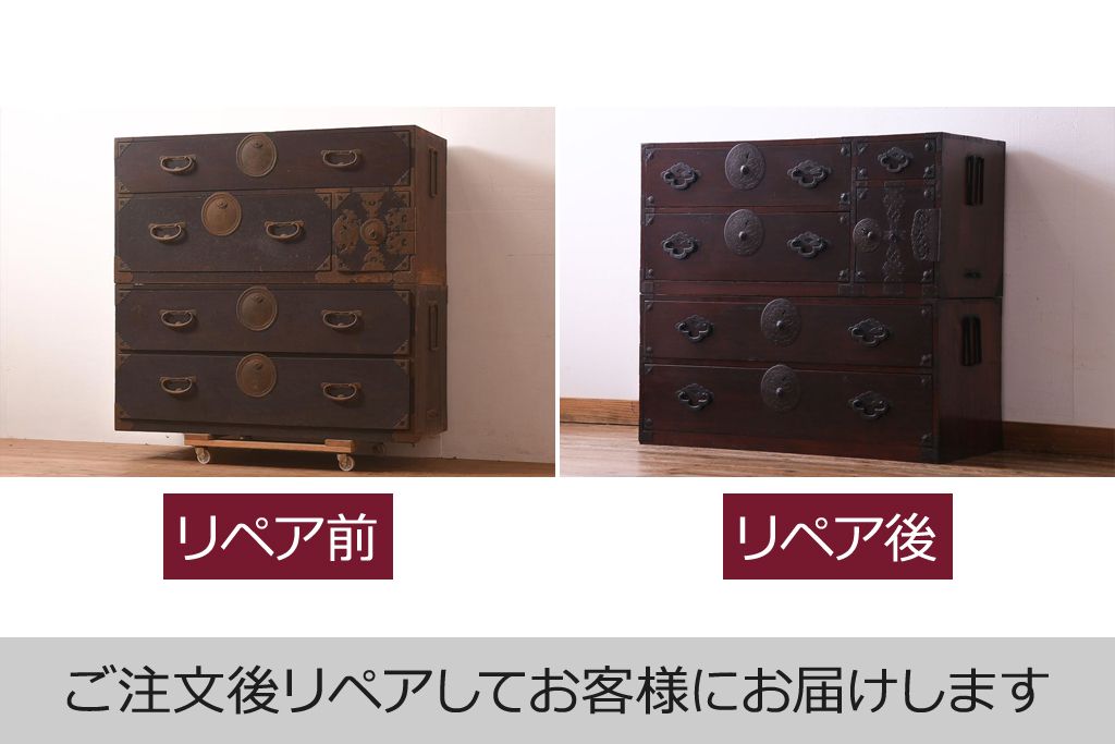 アンティーク家具 明治大正期 前面ケヤキ材 凝った丸金具が上品な印象の仙台箪笥(重ね箪笥、野郎箪笥、時代箪笥、衣装箪笥)(R-044059)