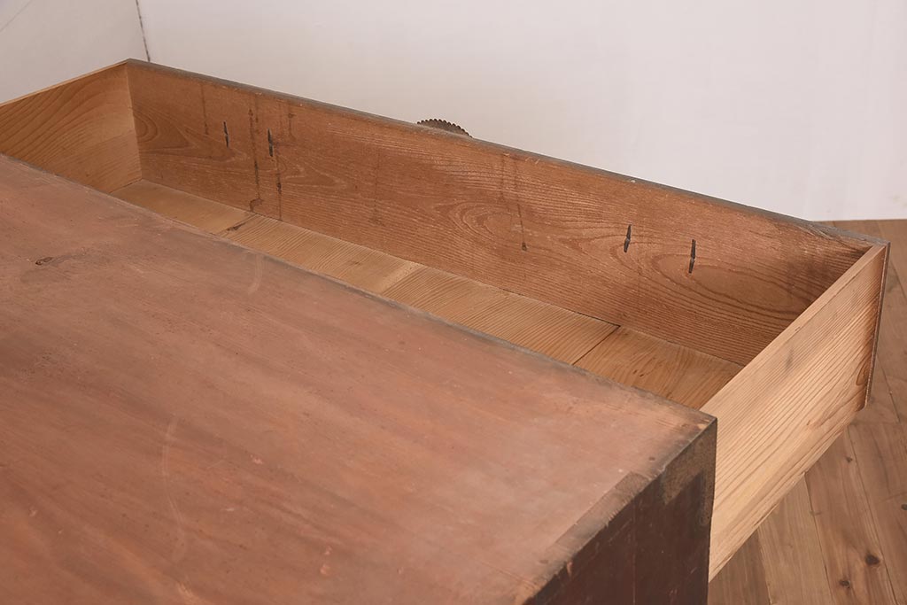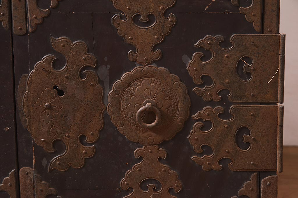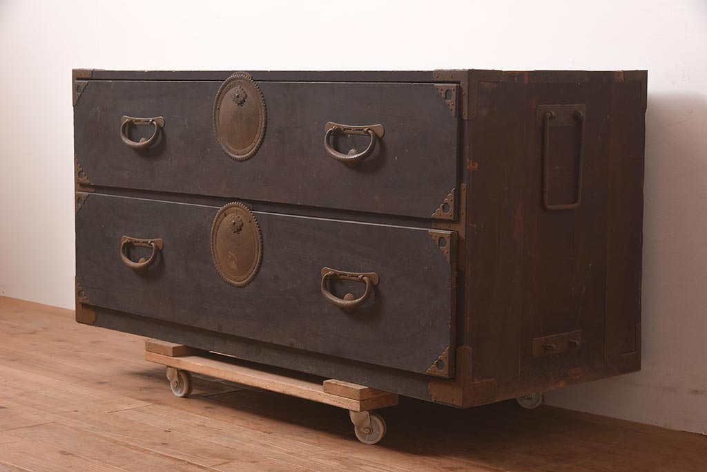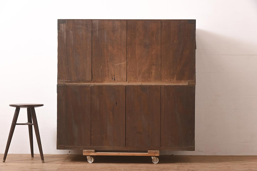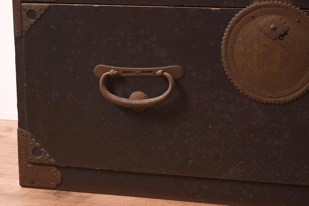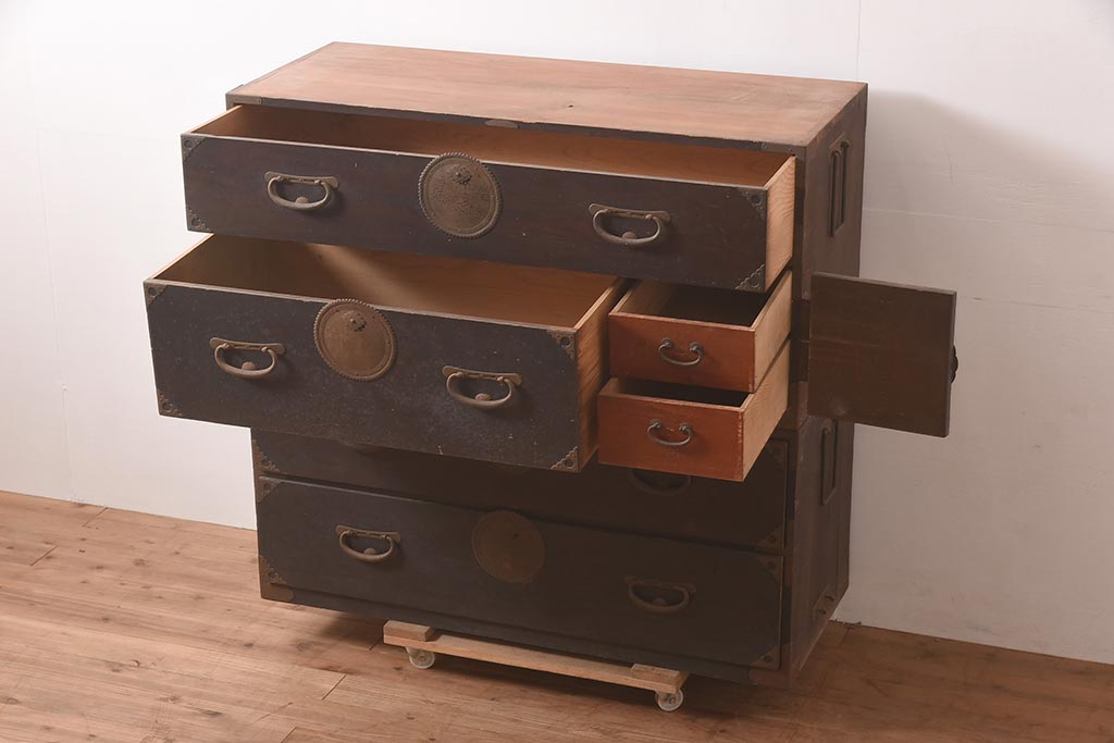 和箪笥 > アンティーク家具 明治大正期 前面ケヤキ材 凝った丸金具が上品な印象の仙台箪笥(重ね箪笥、野郎箪笥、時代箪笥、衣装箪笥)(R-044059)