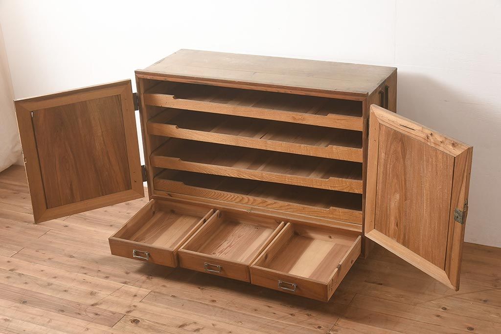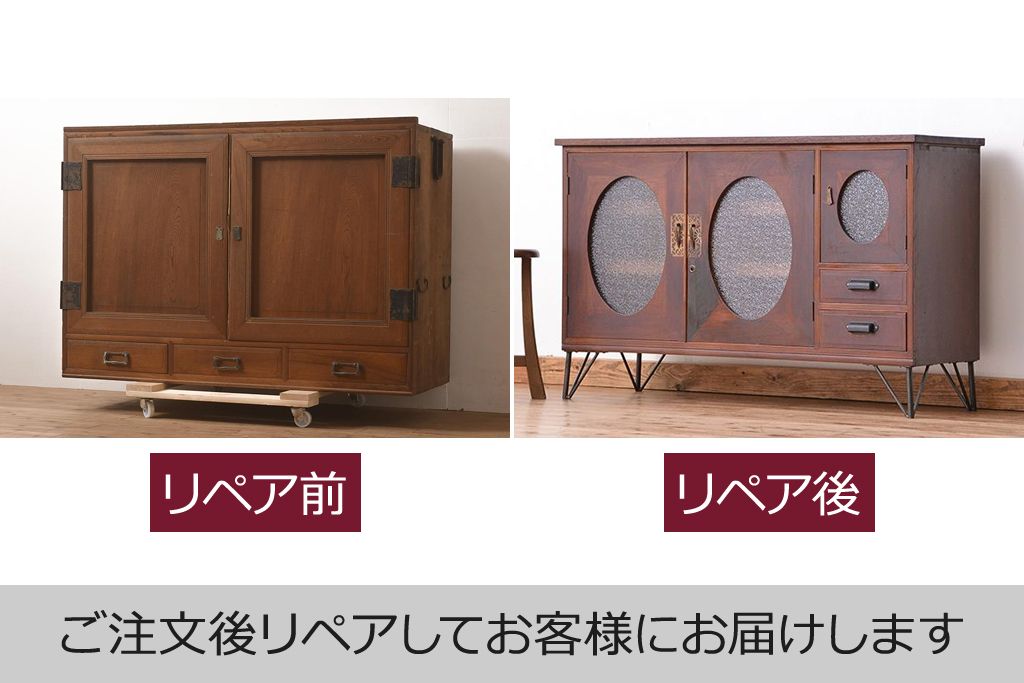 アンティーク家具 和製アンティーク 昭和初期 前面ケヤキ材 大正ロマン薫る箪笥ローボード(和箪笥、収納棚、引き出し、チェスト)(R-043757)