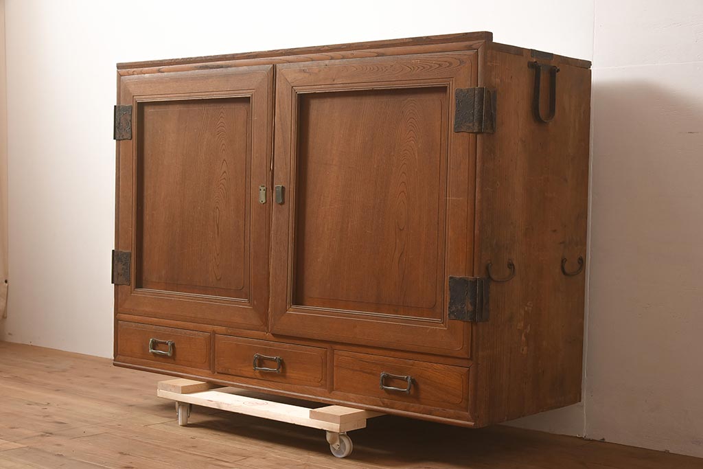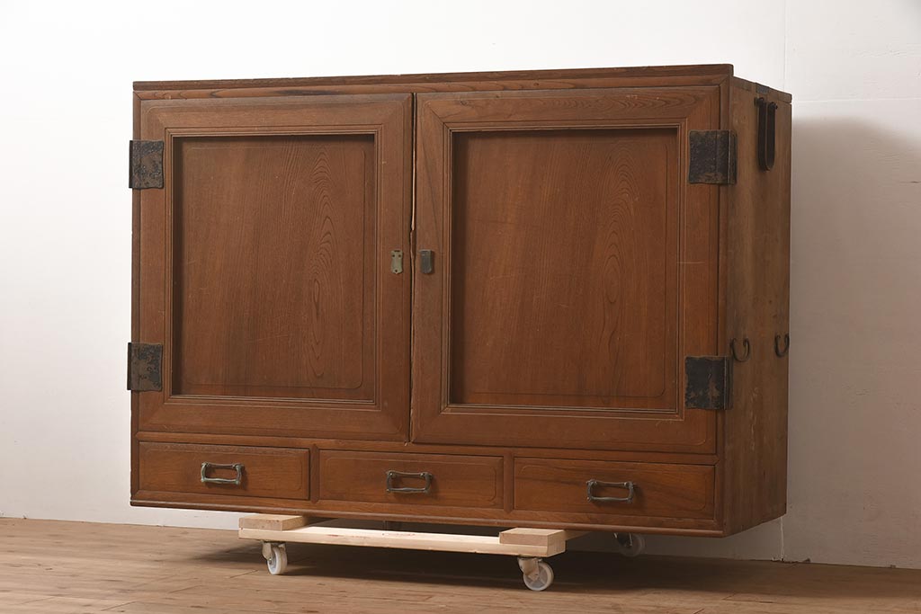 アンティーク家具 和製アンティーク 昭和初期 前面ケヤキ材 大正ロマン薫る箪笥ローボード(和箪笥、収納棚、引き出し、チェスト)(R-043757)です。