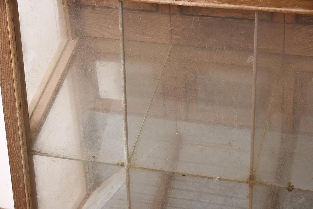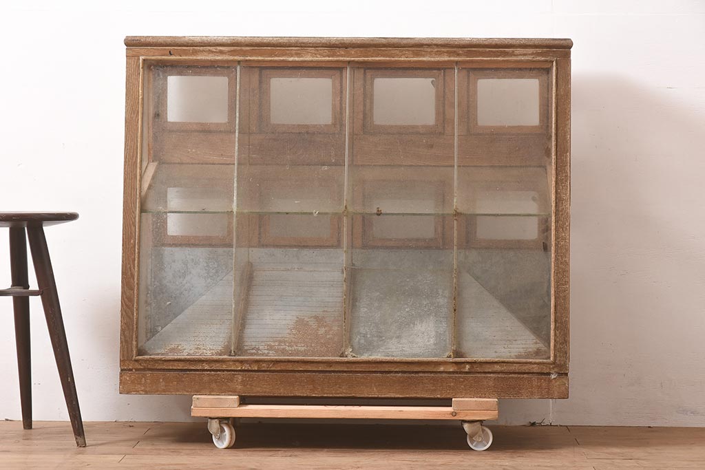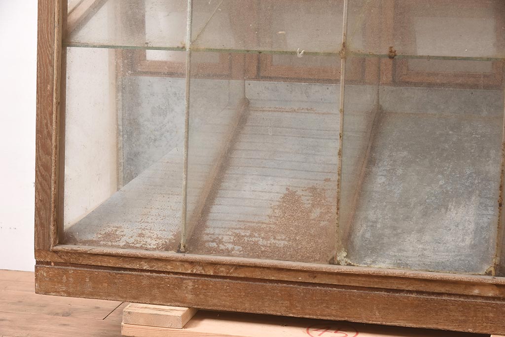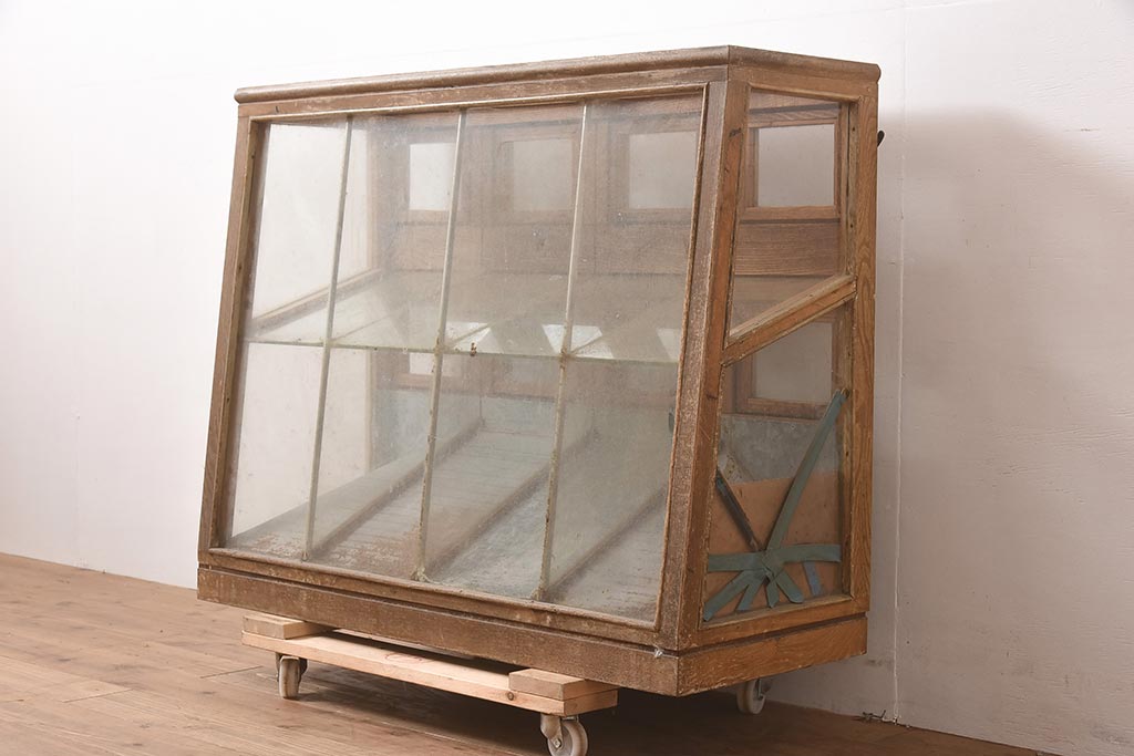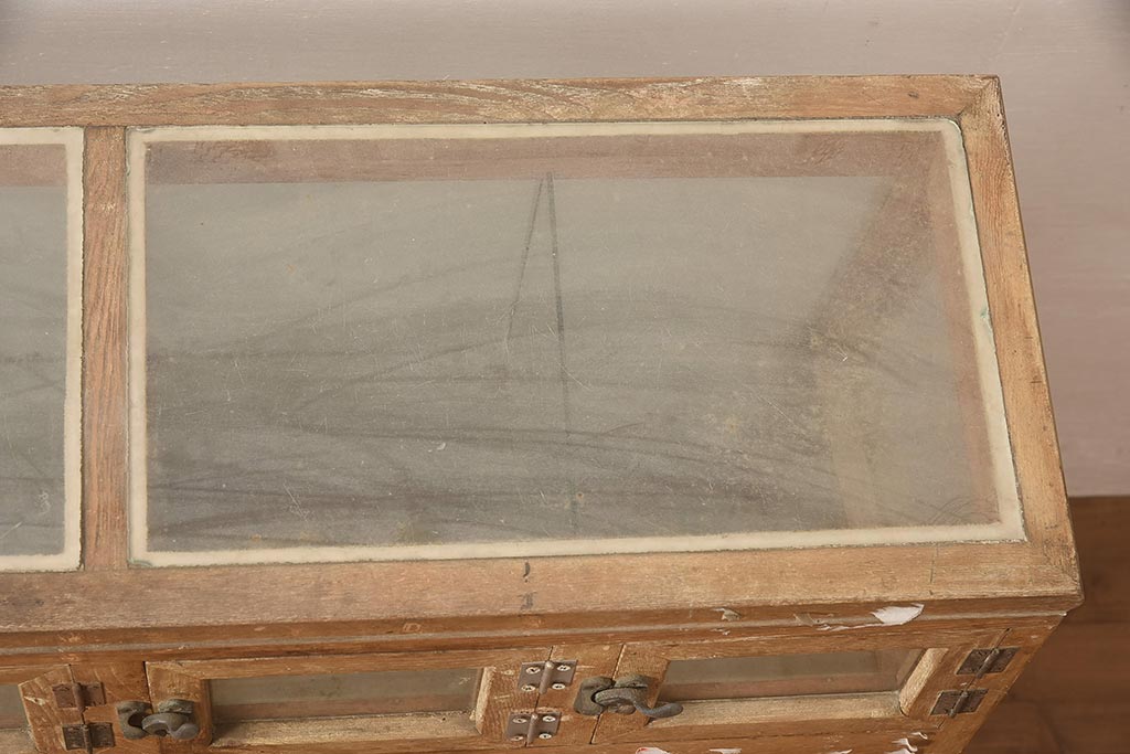 ガラスケース・ショーケース > アンティーク家具 昭和中期 ナラ材 味のある風合いが魅力のレトロなガラスケース(ショーケース、陳列棚、マス目)(R-044067)
