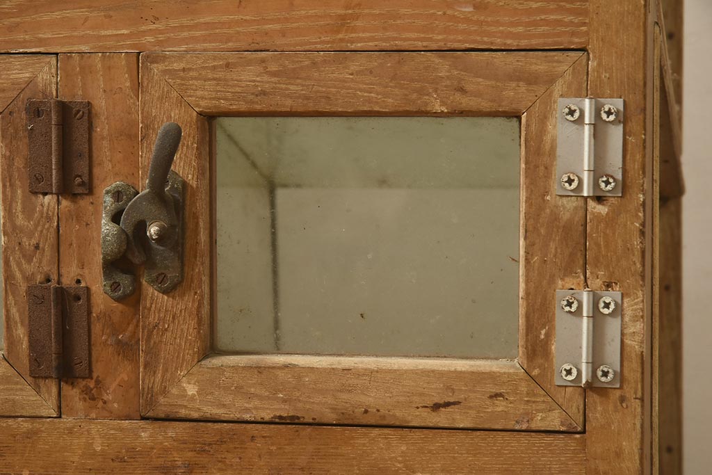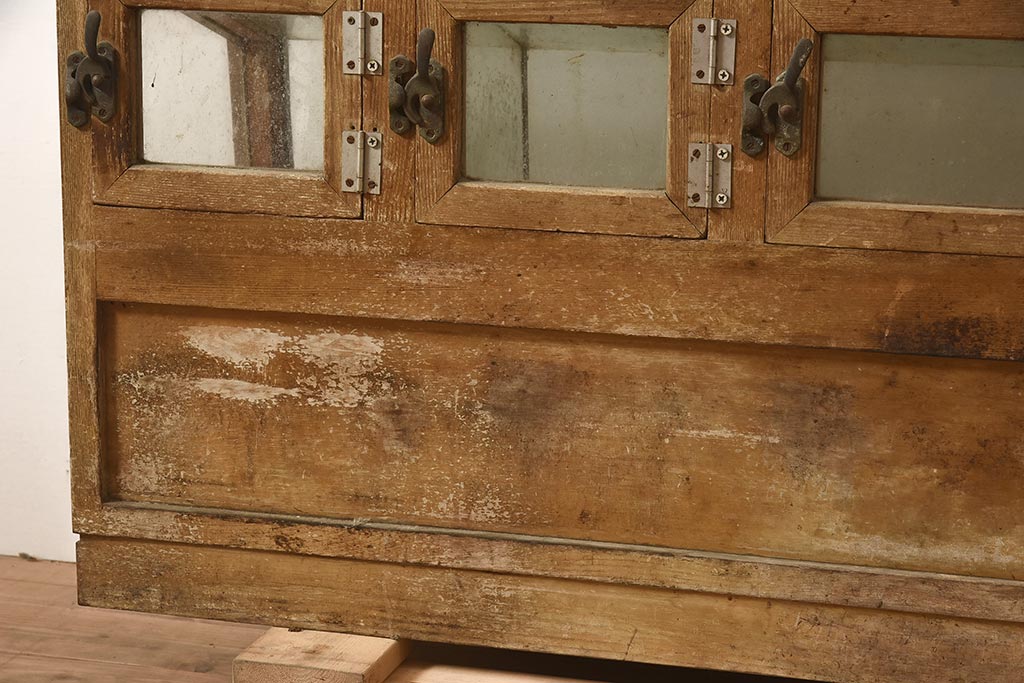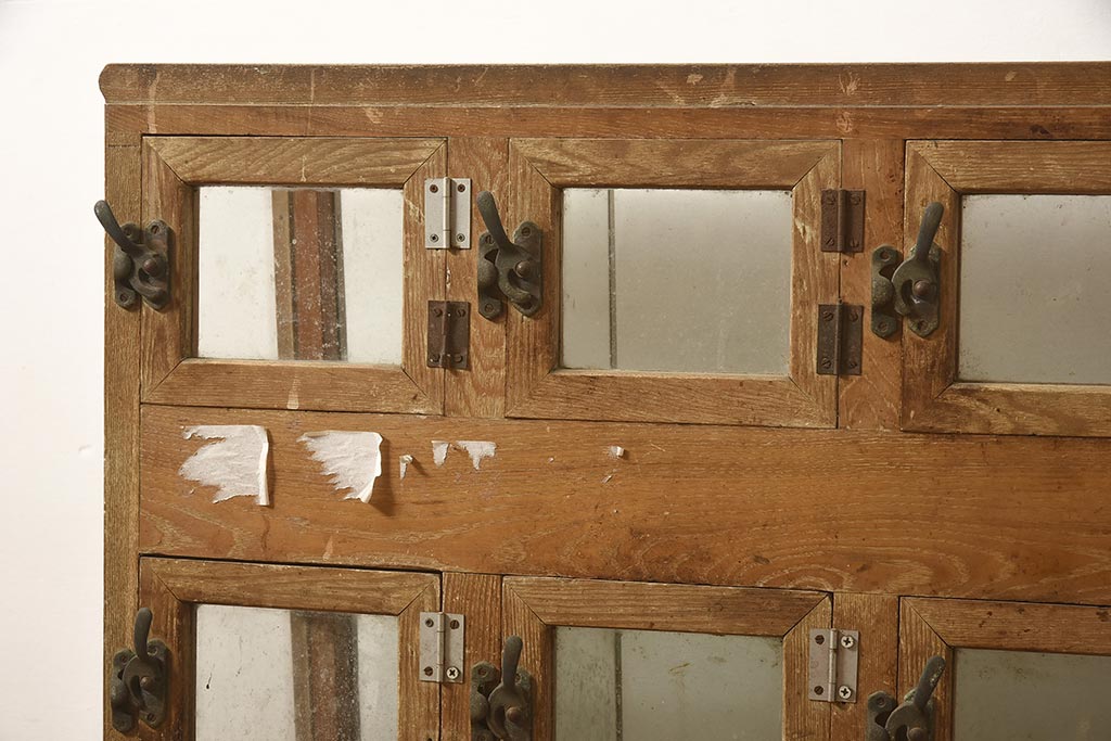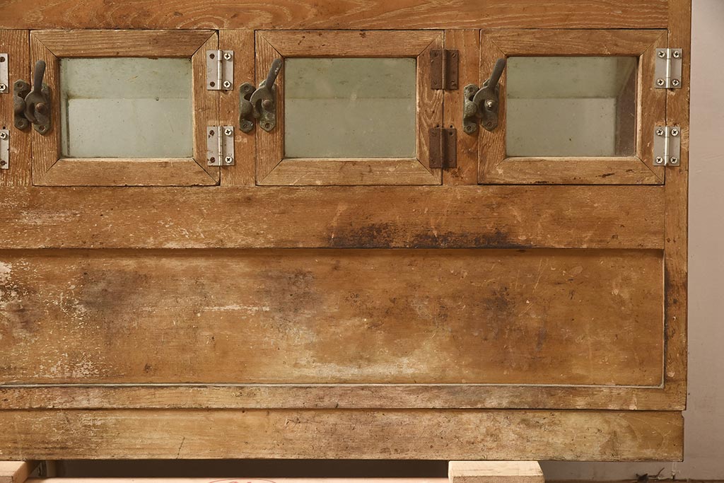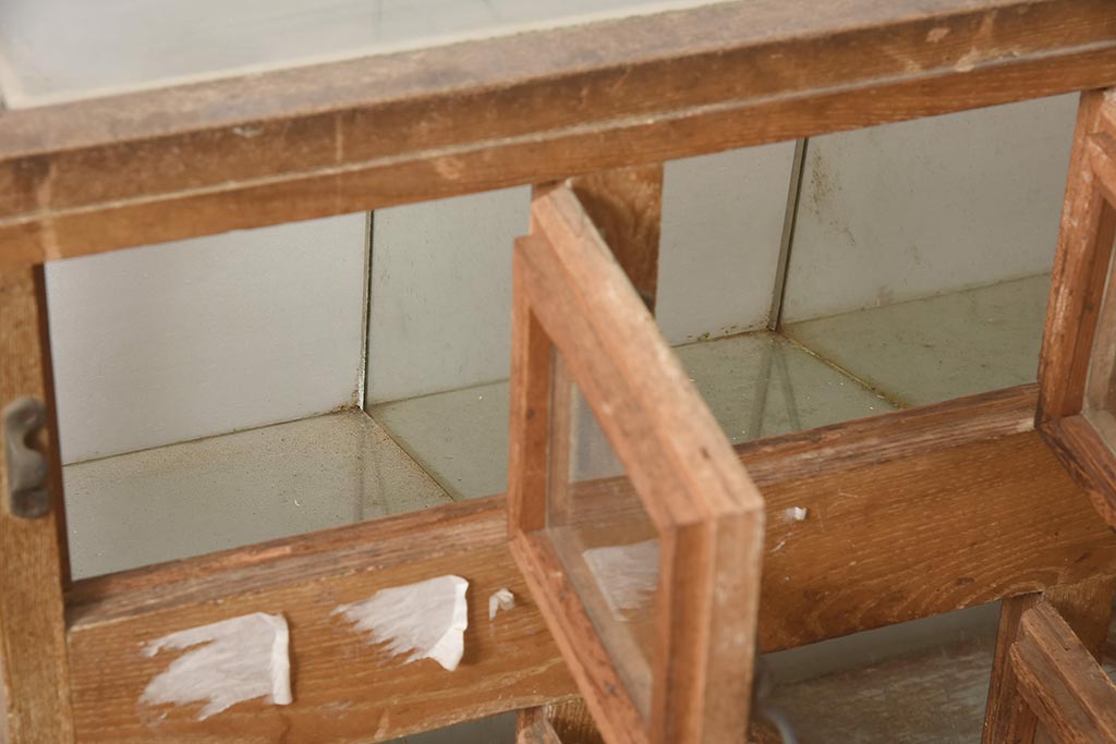 ガラスケース・ショーケース > アンティーク家具 昭和中期 ナラ材 味のある風合いが魅力のレトロなガラスケース(ショーケース、陳列棚、マス目)(R-044067)