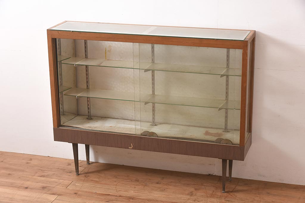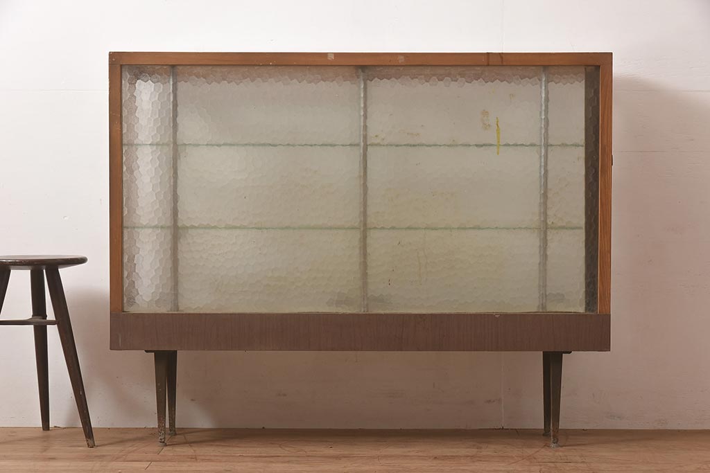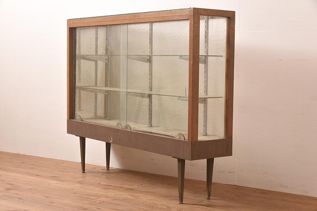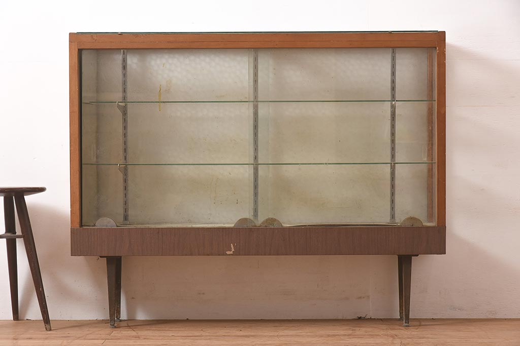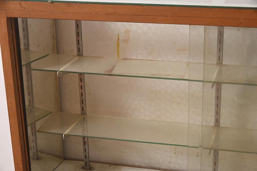 アンティーク家具 和製アンティーク 昭和中期 味のある風合いが魅力のレトロなガラスケース(ショーケース、陳列棚)(R-044075)