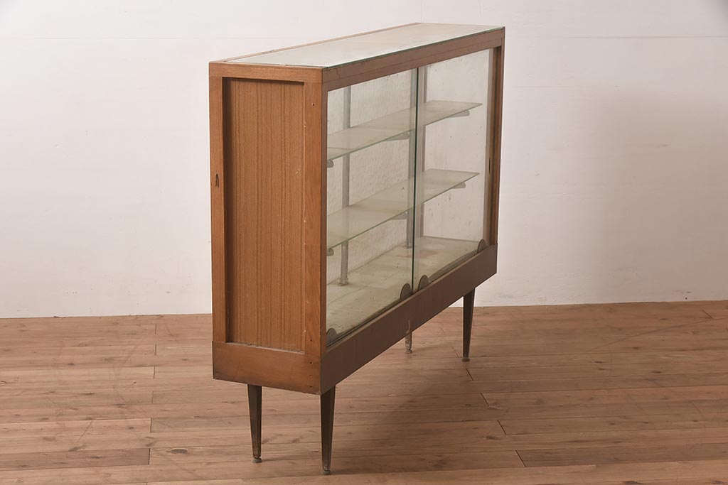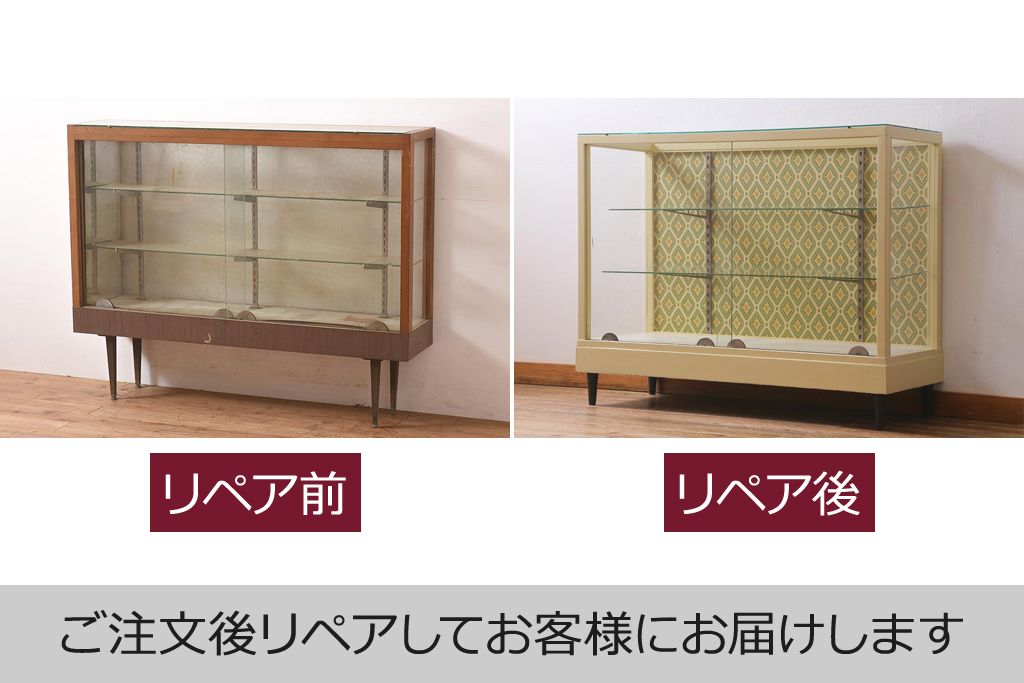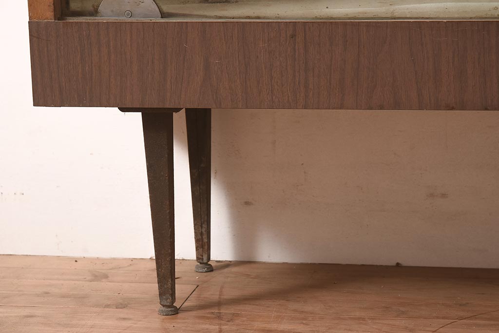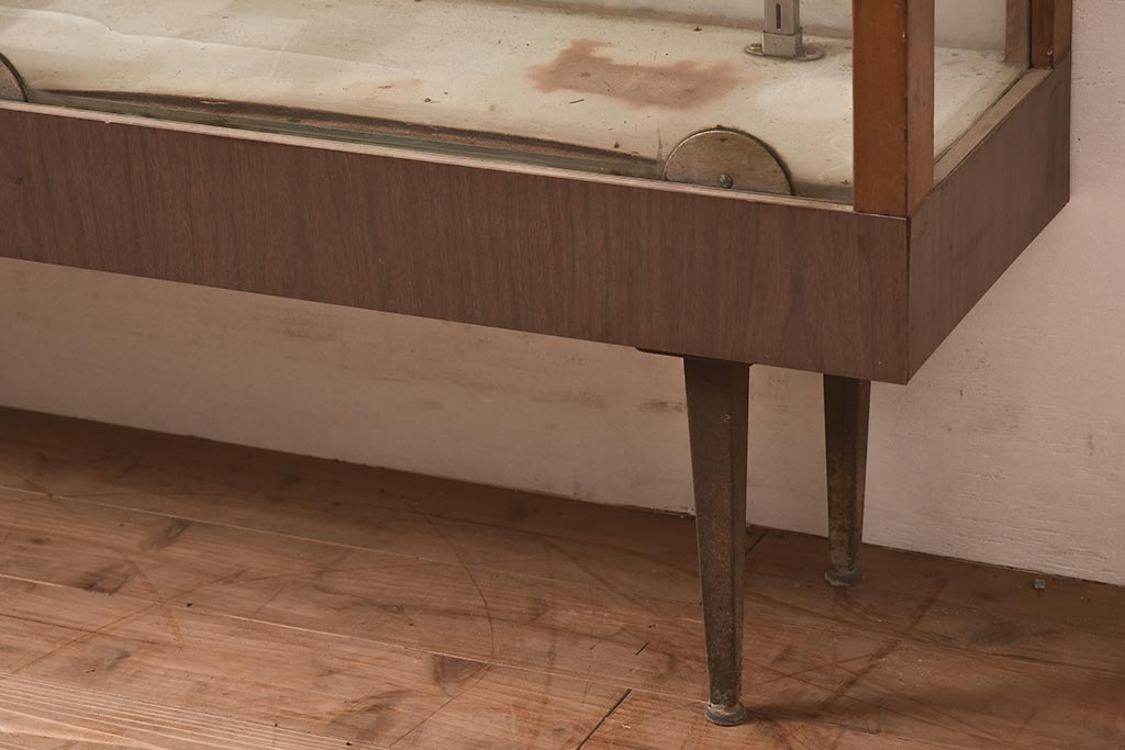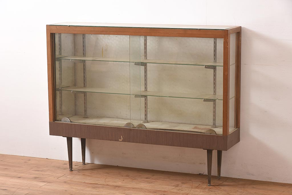 アンティーク家具 和製アンティーク 昭和中期 味のある風合いが魅力のレトロなガラスケース(ショーケース、陳列棚)(R-044075)