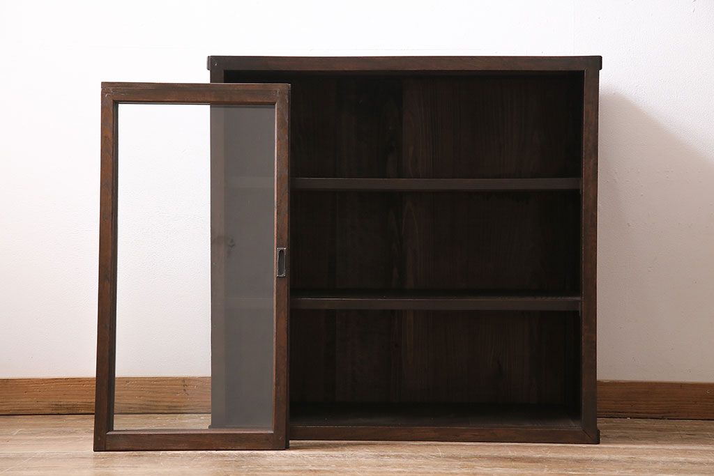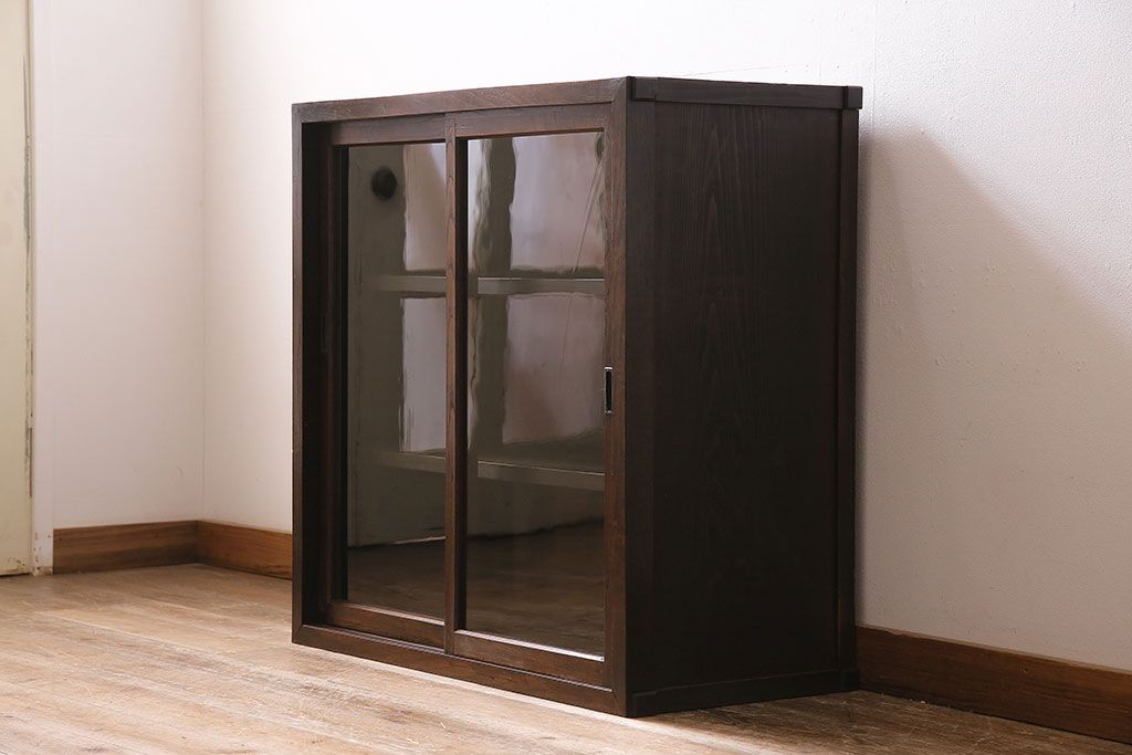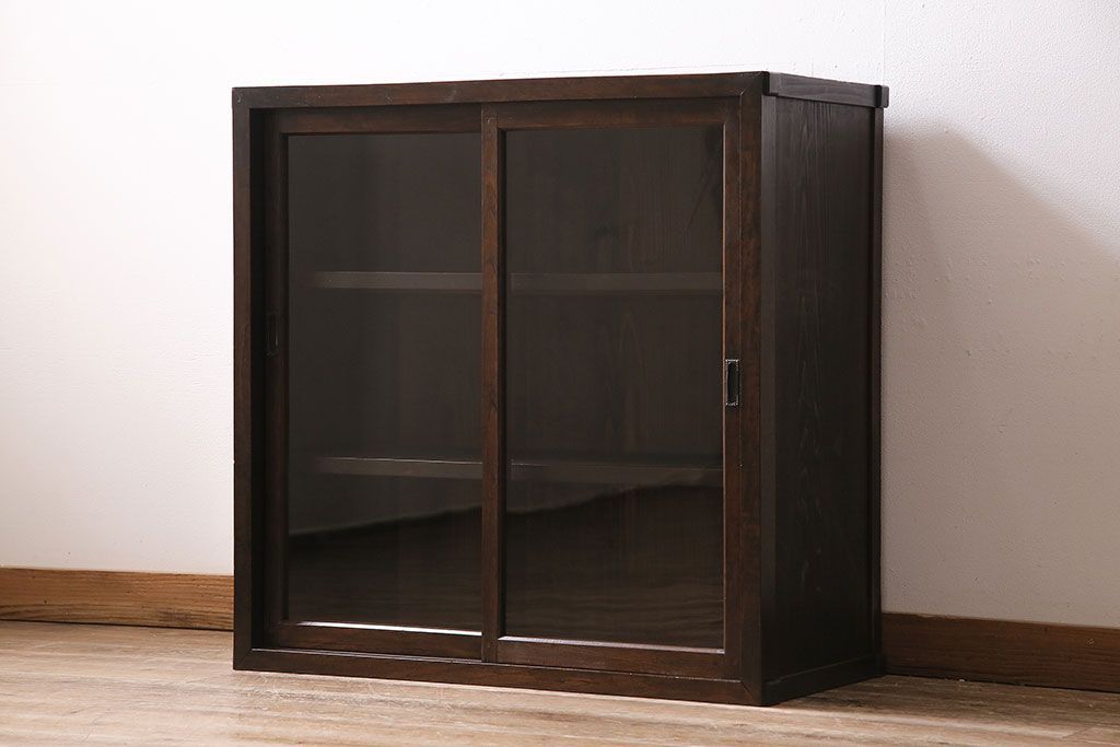 和製アンティークのガラス戸棚です。