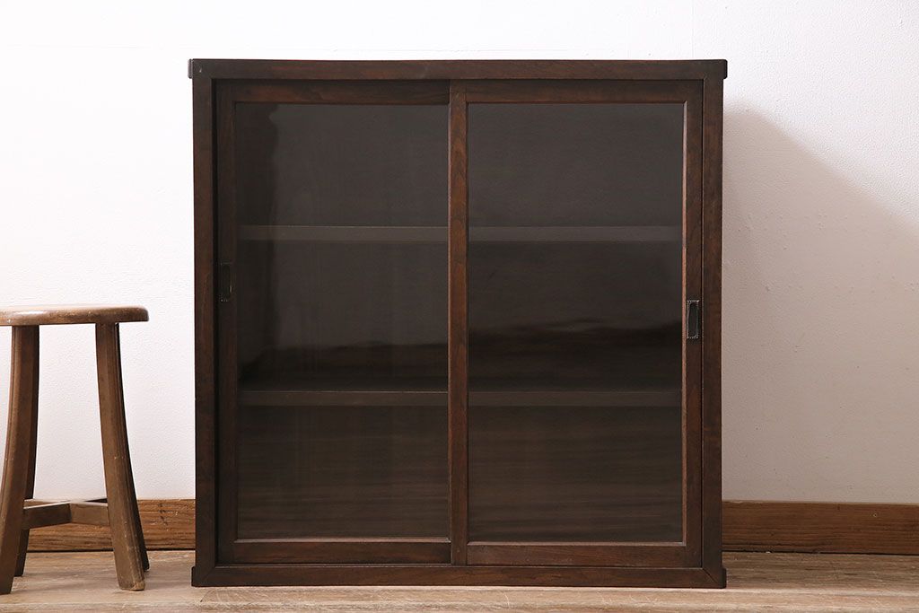 アンティーク家具 和製アンティーク 大正昭和初期 シンプルながらも趣ある佇まいのガラス戸棚(キャビネット、収納棚)(R-044250)