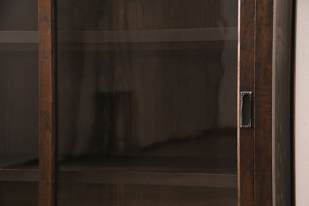 キャビネット・戸棚> 本箱 > アンティーク家具 和製アンティーク 大正昭和初期 シンプルながらも趣ある佇まいのガラス戸棚(キャビネット、収納棚)(R-044250)