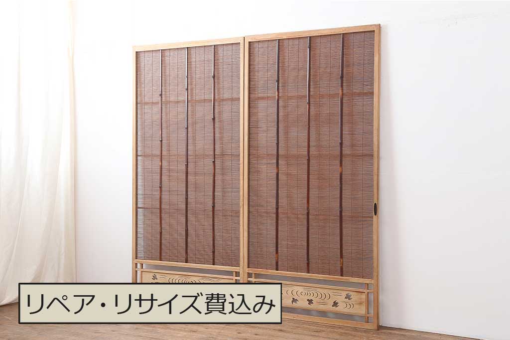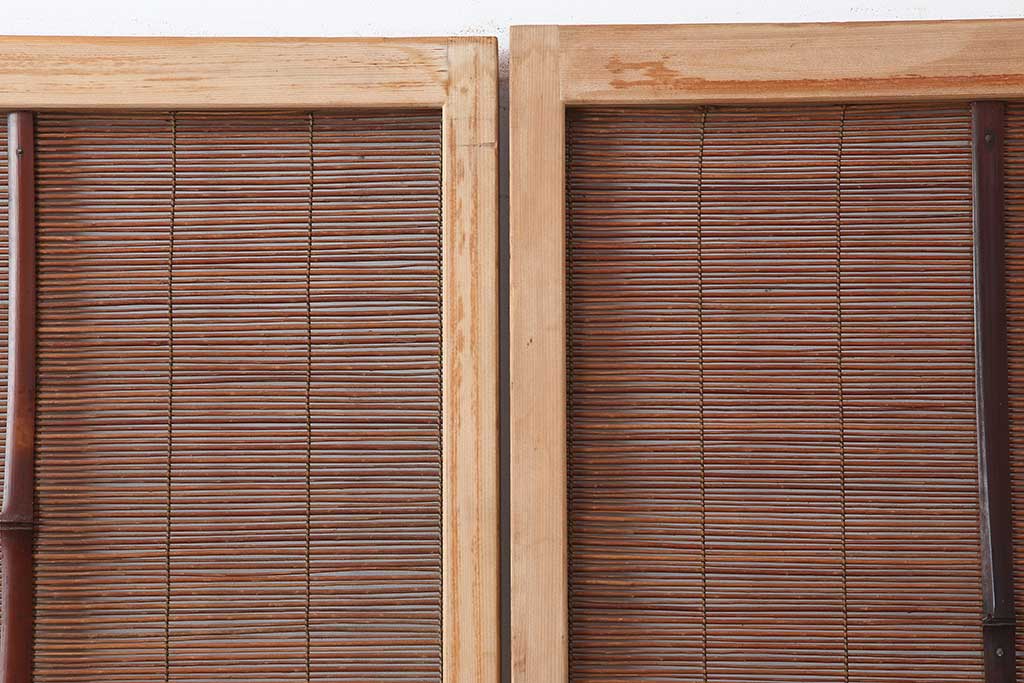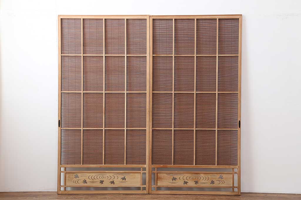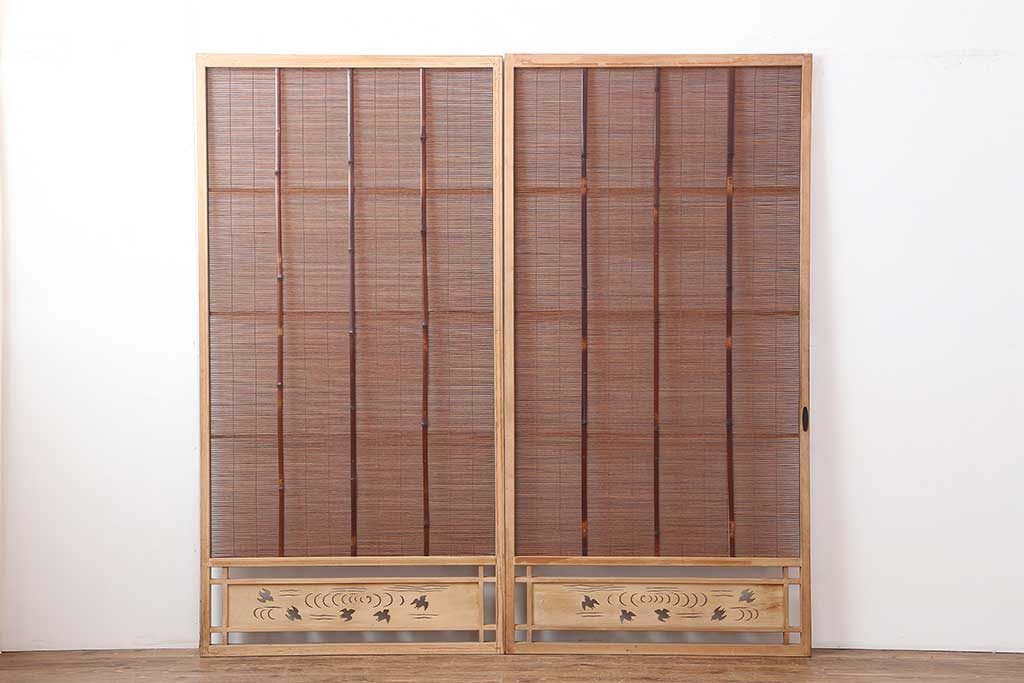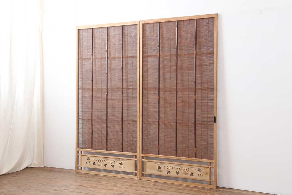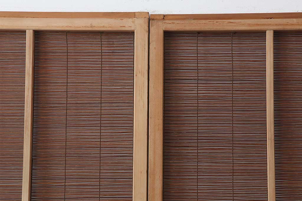 レトロ建具 昭和中期 和の風情を高める御簾戸2枚セット(簾戸、簀戸、葭戸、夏障子、夏戸、葦戸)(R-044192)