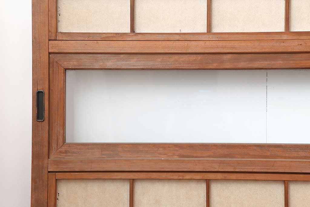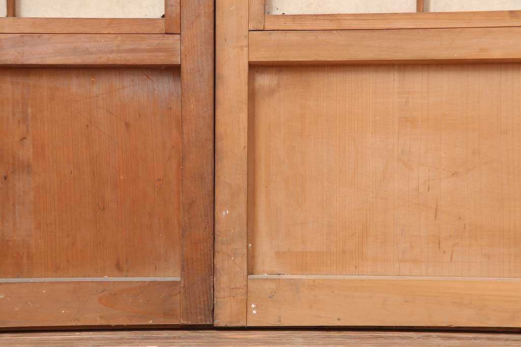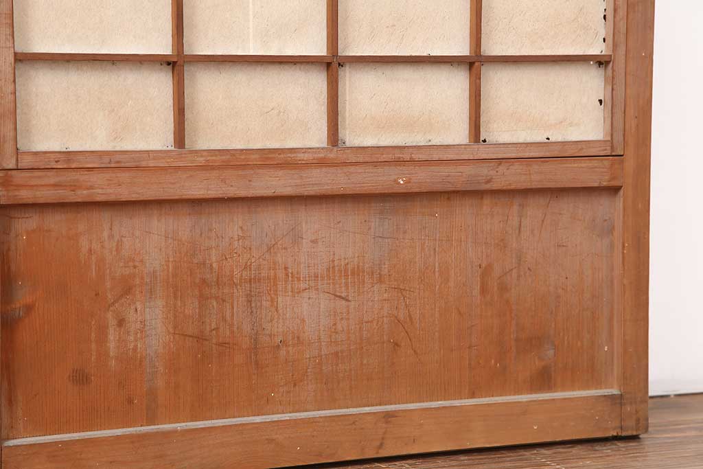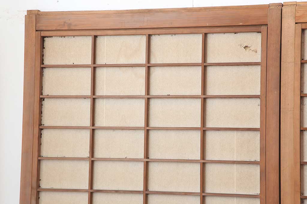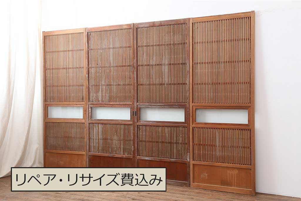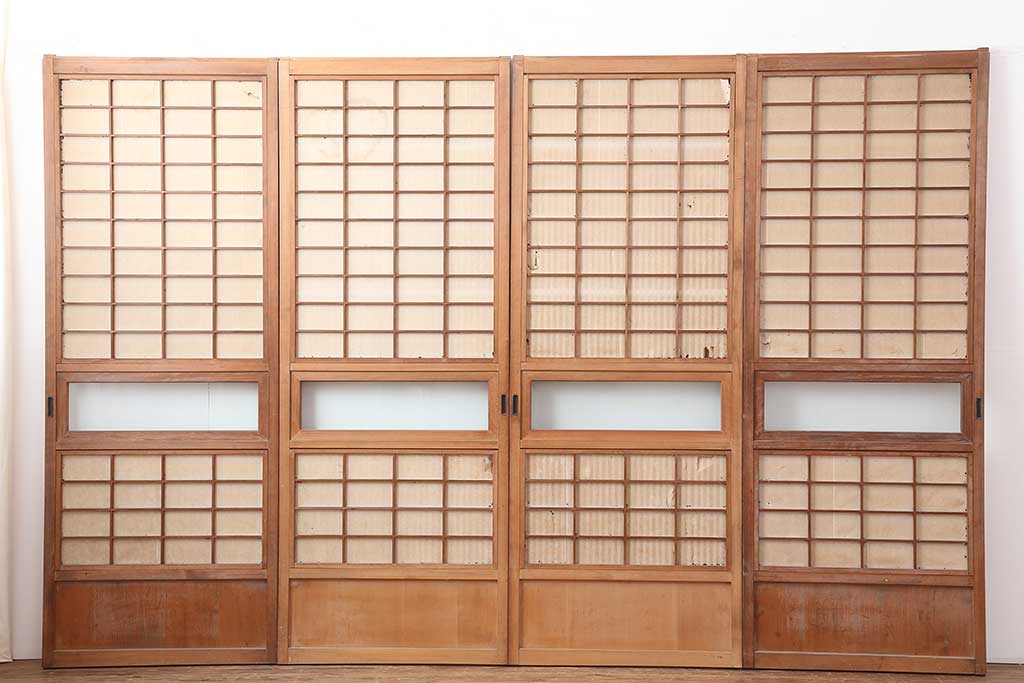 アンティーク建具 昭和初期 裏障子付き 幅狭タイプ 和の雰囲気を高める格子戸4枚セット(引き戸、障子戸)(R-044190)