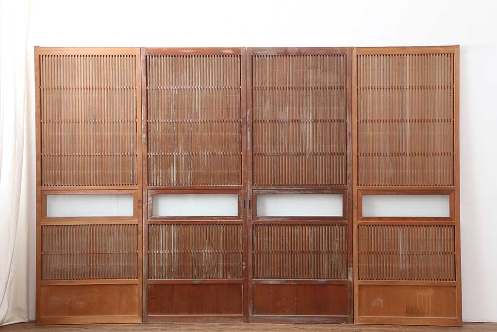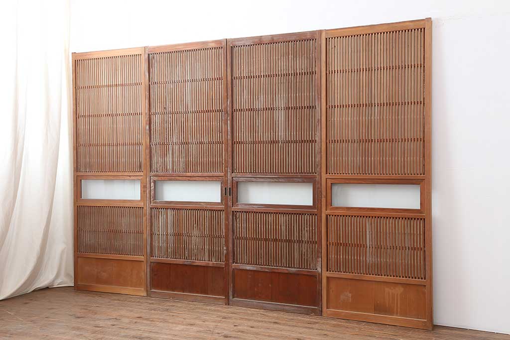 ドア・建具> 4枚〜セット > アンティーク建具 昭和初期 裏障子付き 幅狭タイプ 和の雰囲気を高める格子戸4枚セット(引き戸、障子戸)(R-044190)