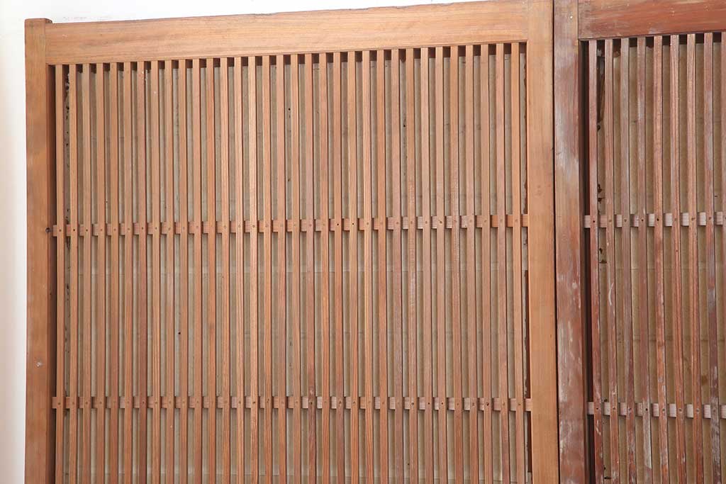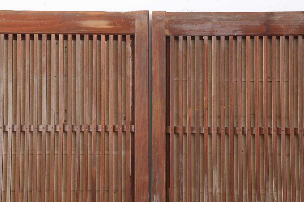 ドア・建具> 格子戸 > アンティーク建具 昭和初期 裏障子付き 幅狭タイプ 和の雰囲気を高める格子戸4枚セット(引き戸、障子戸)(R-044190)