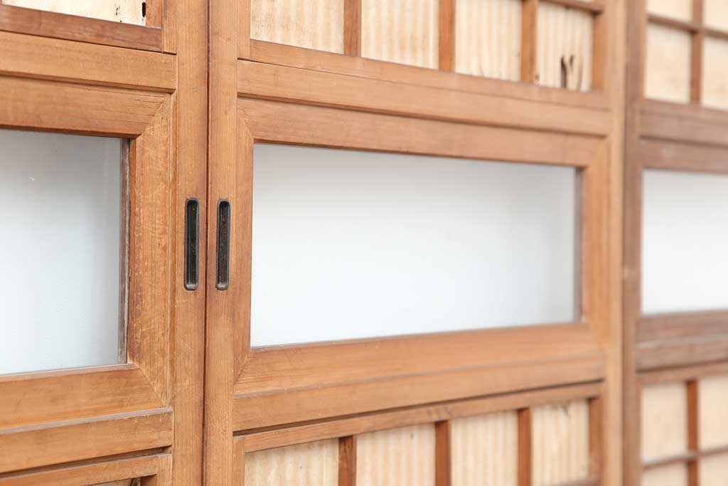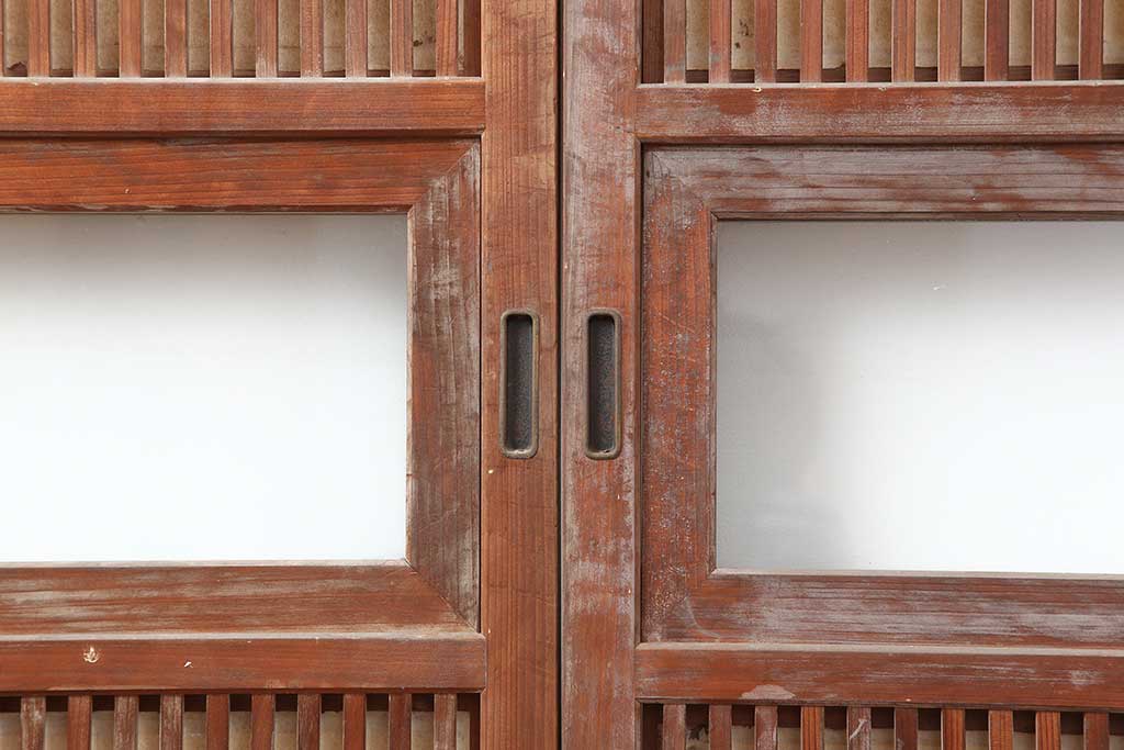 ドア・建具> 引き戸 > アンティーク建具 昭和初期 裏障子付き 幅狭タイプ 和の雰囲気を高める格子戸4枚セット(引き戸、障子戸)(R-044190)