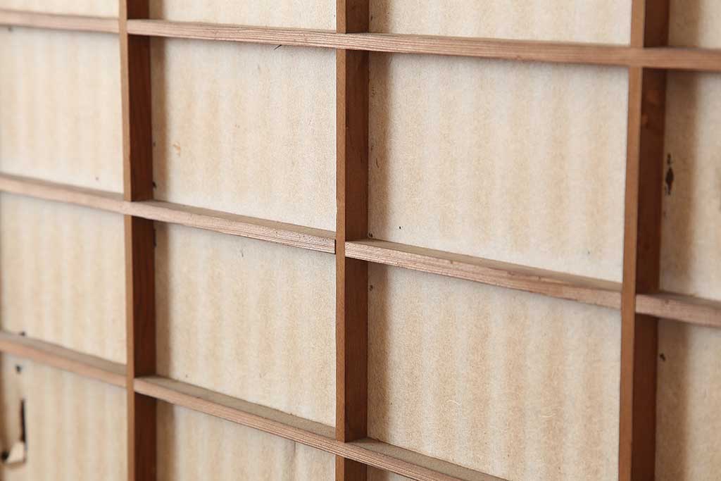 ドア・建具> 障子戸 > アンティーク建具 昭和初期 裏障子付き 幅狭タイプ 和の雰囲気を高める格子戸4枚セット(引き戸、障子戸)(R-044190)