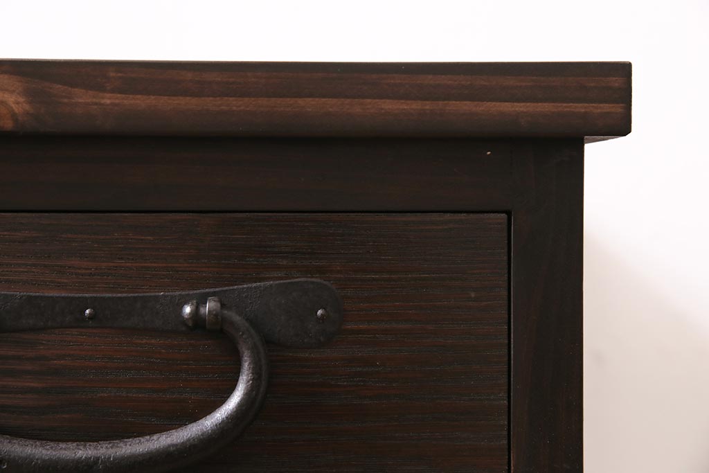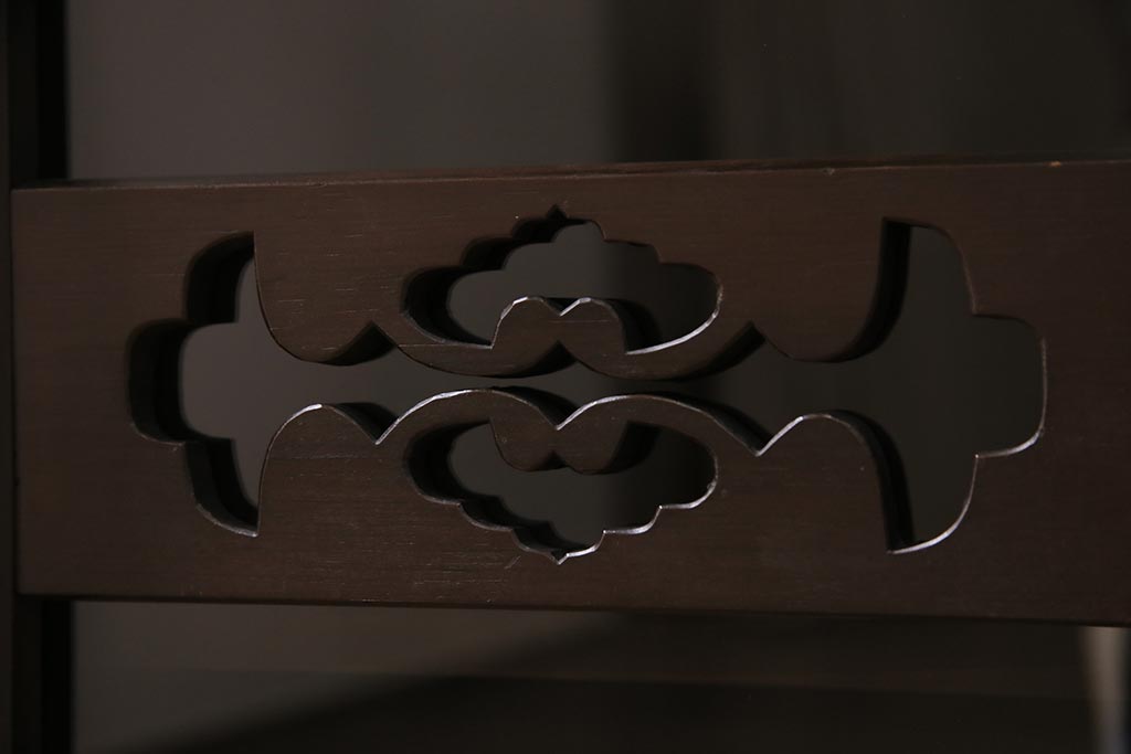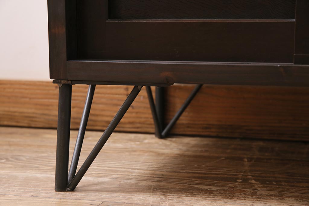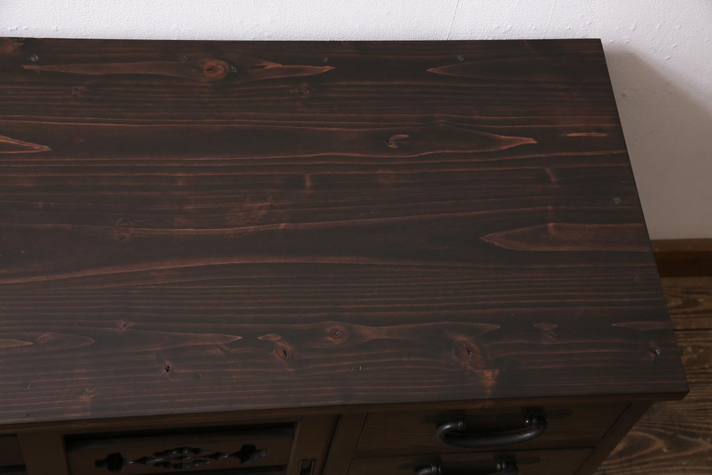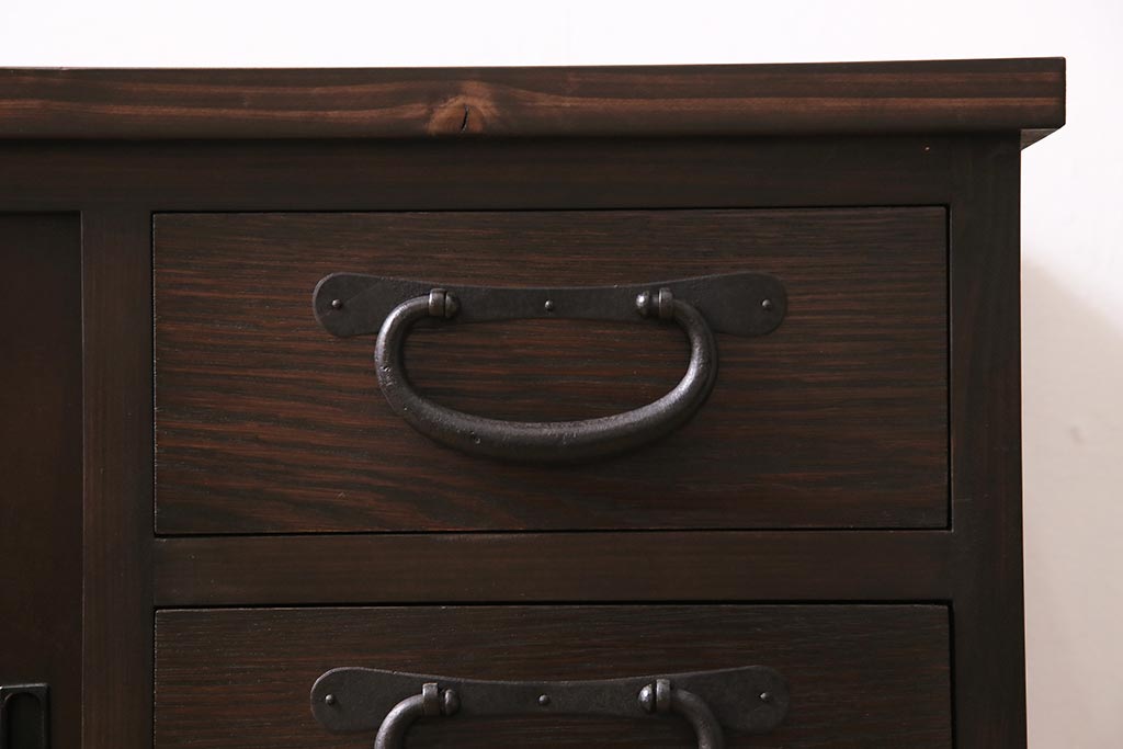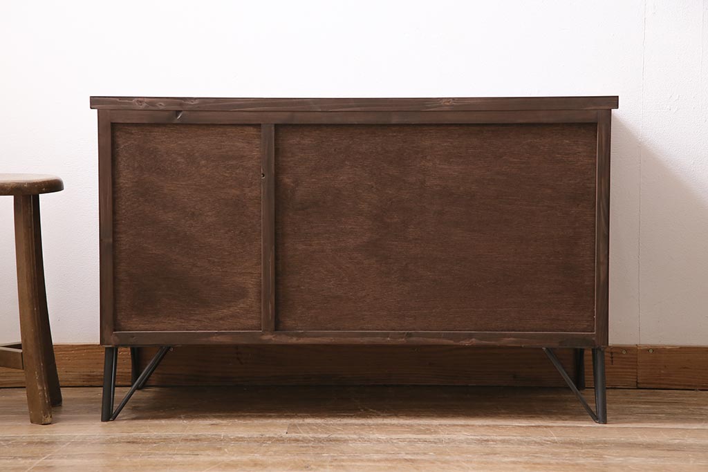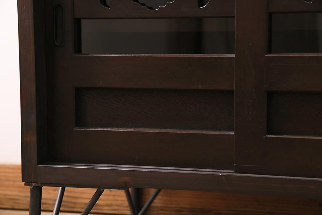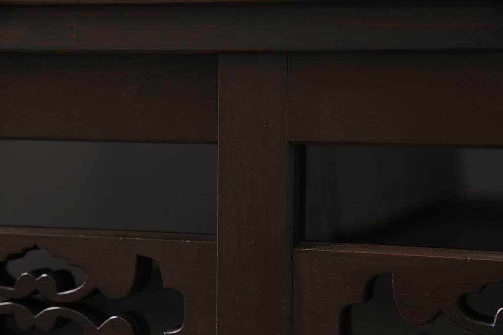 ラフジュ工房オリジナル 明治期 古建具リメイク 引き出し・脚付き 透かし彫りの意匠がアクセントになるローボード(収納棚、戸棚、テレビ台、テレビボード)(R-044276)です。