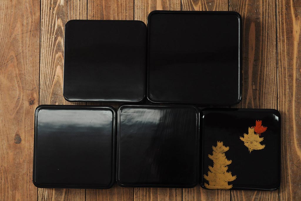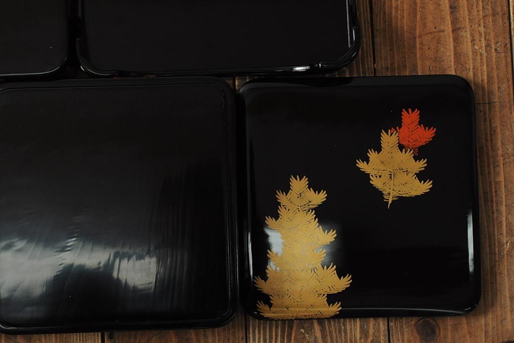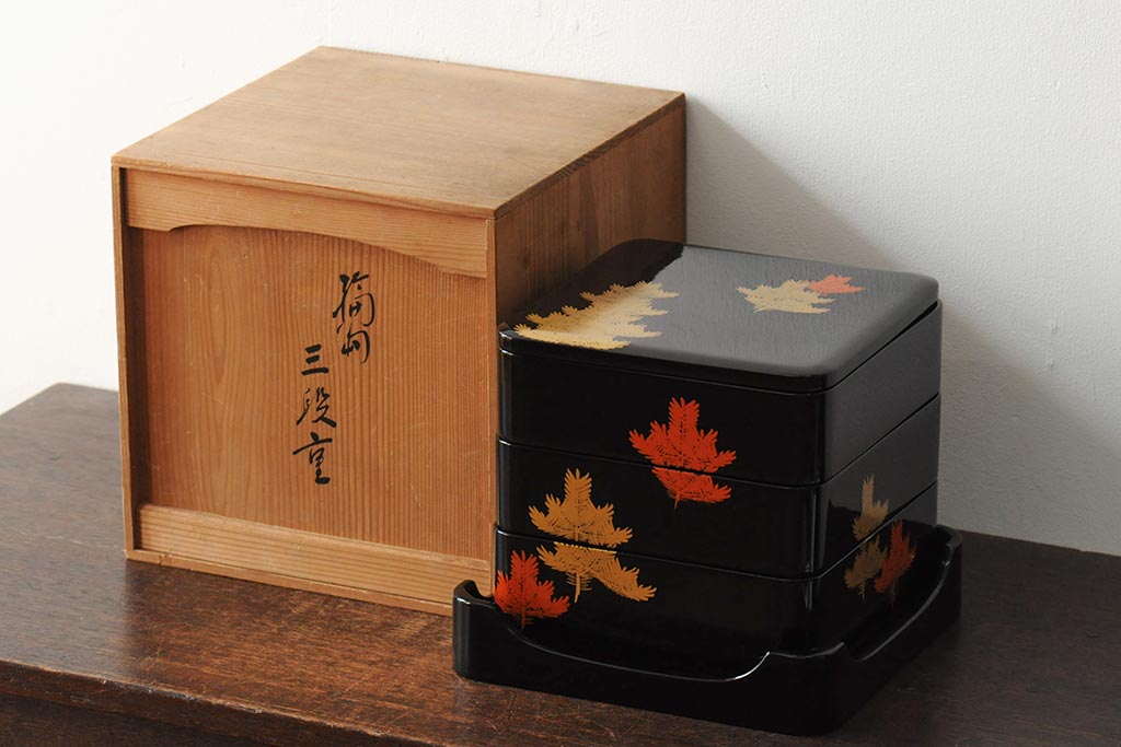 ラフジュ工房> 和食器・茶道具> お盆・お膳・お重 > 昭和期 輪島塗 松図木製三段重・重台 箱付き(重箱、漆器)(R-043770)