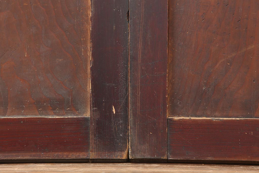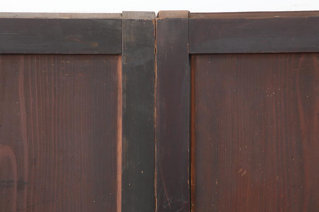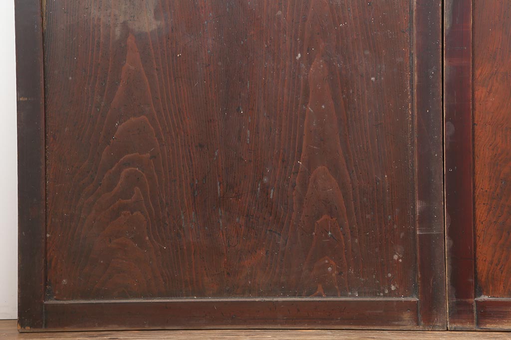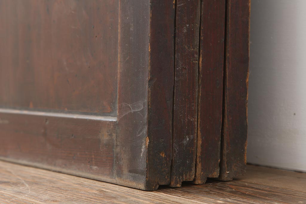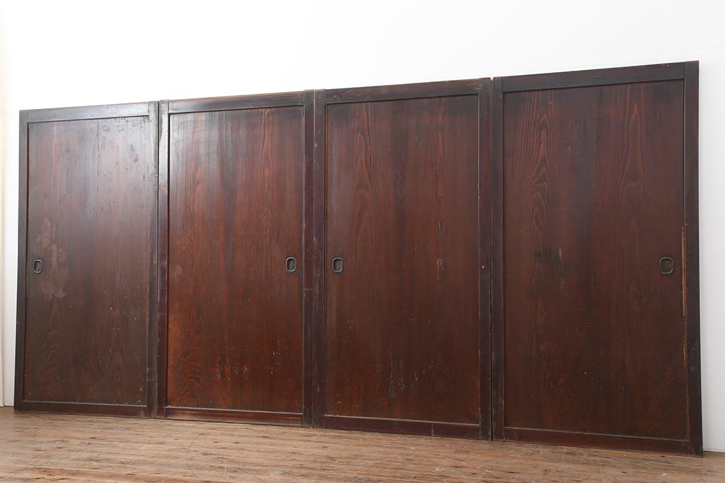 ドア・建具> 4枚〜セット > アンティーク建具 和製アンティーク 明治期 タヌキの意匠の引手が味わい深い板戸4枚セット(建具、引き戸)(R-044272)