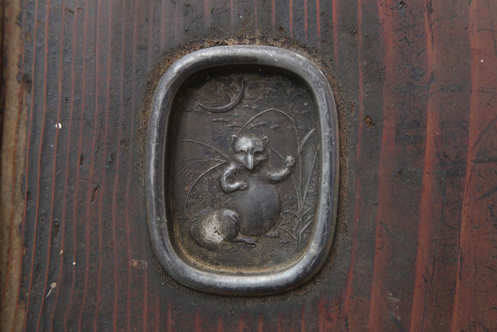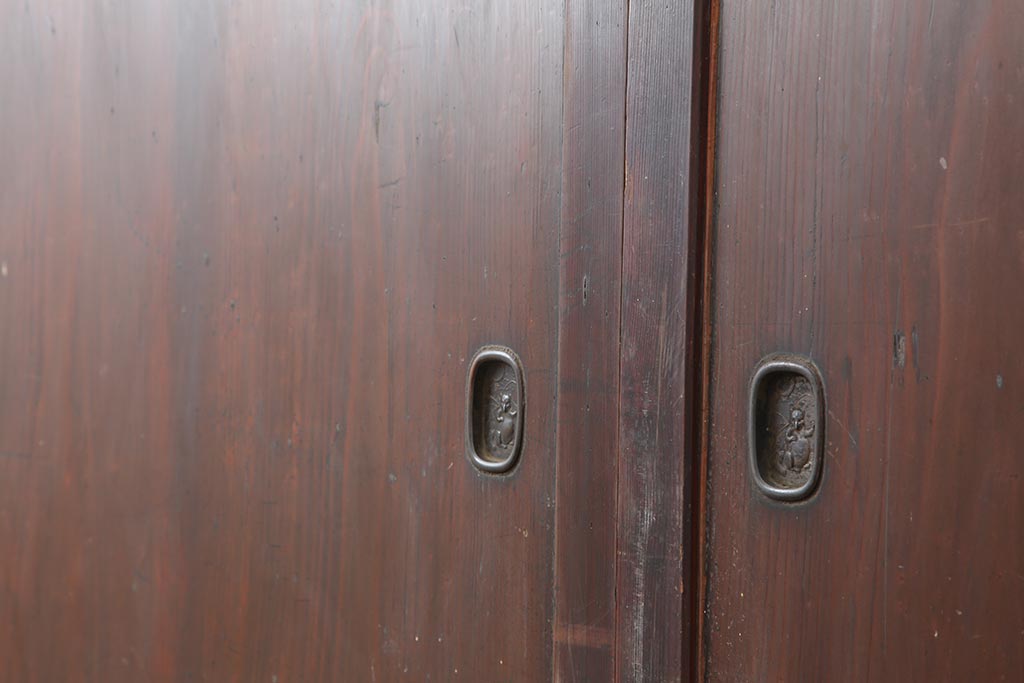 ドア・建具> 引き戸 > アンティーク建具 和製アンティーク 明治期 タヌキの意匠の引手が味わい深い板戸4枚セット(建具、引き戸)(R-044272)