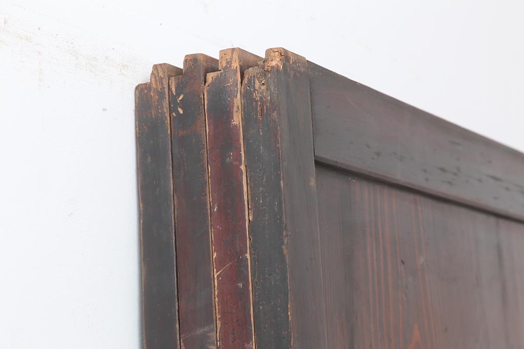 アンティーク建具 和製アンティーク 明治期 タヌキの意匠の引手が味わい深い板戸4枚セット(建具、引き戸)(R-044272)
