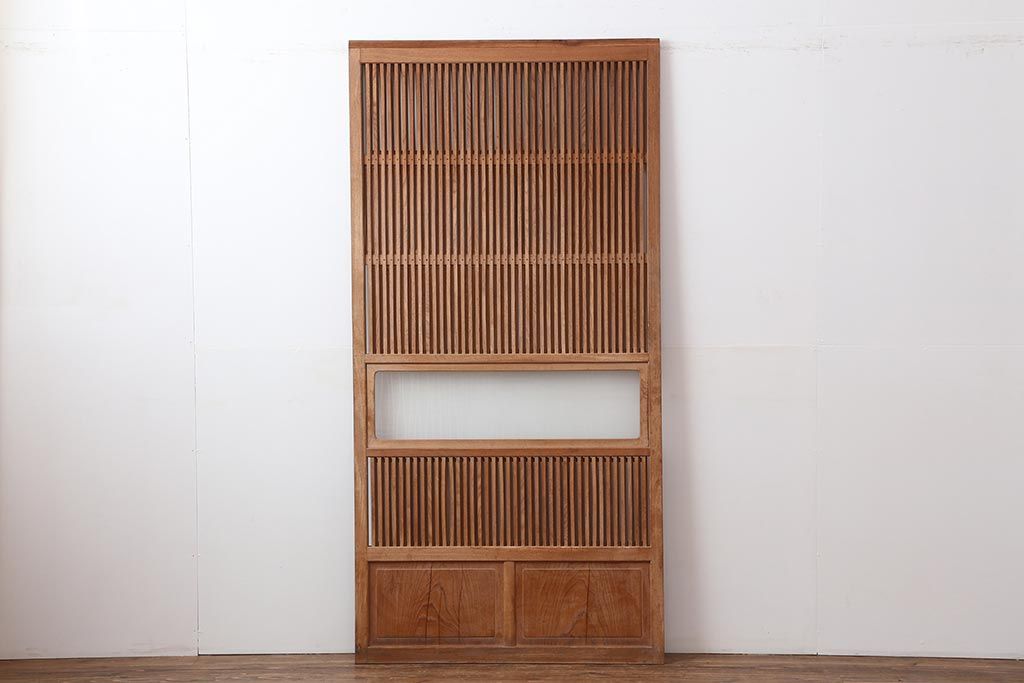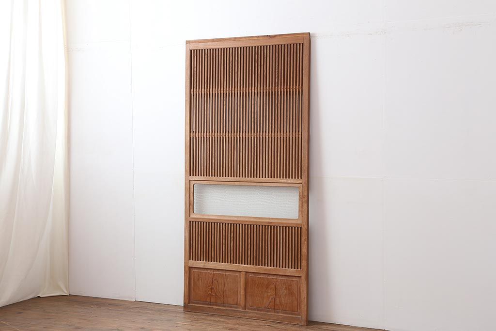ドア・建具> 板戸・帯戸 > アンティーク建具 和製アンティーク 大正昭和初期 総栗材・腰板ケヤキ材 大珍品! 無双格子戸1枚(引き戸、建具)(R-044280)
