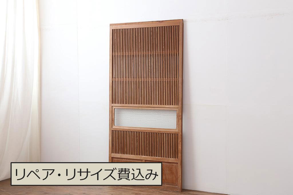 アンティーク建具 和製アンティーク 大正昭和初期 総栗材・腰板ケヤキ材 大珍品! 無双格子戸1枚(引き戸、建具)(R-044280)