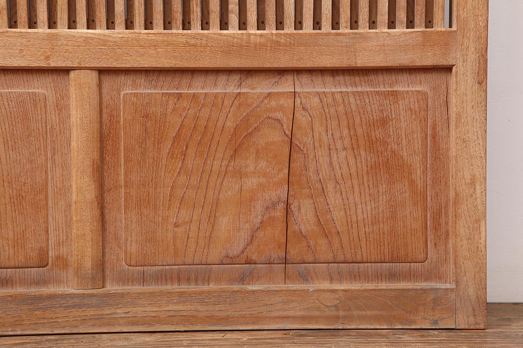 状態が気になる方には現状販売はおすすめできませんので、慎重なご検討をお願いいたします。アンティーク建具 和製アンティーク 大正昭和初期 総栗材・腰板ケヤキ材 大珍品! 無双格子戸1枚(引き戸、建具)(R-044280)です。