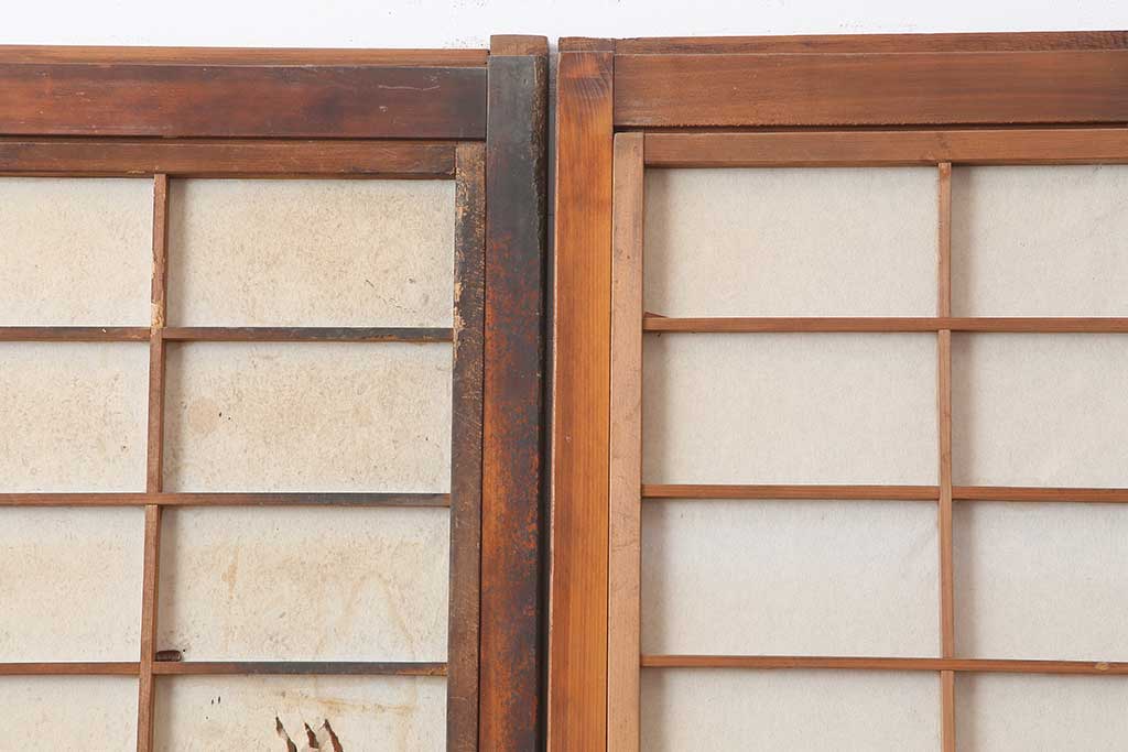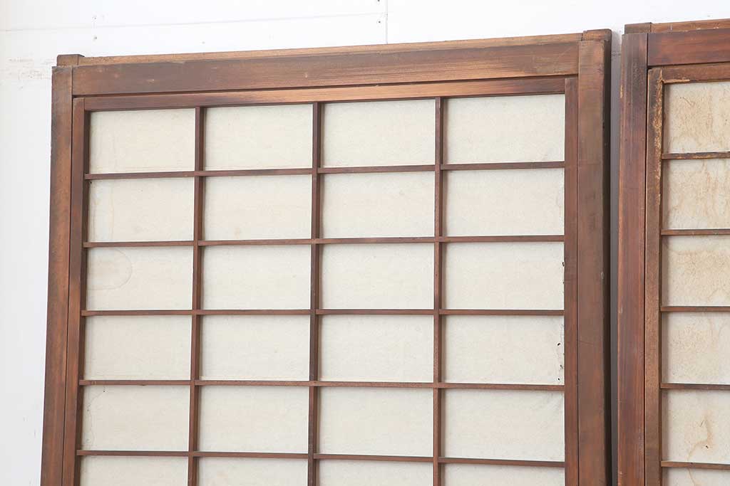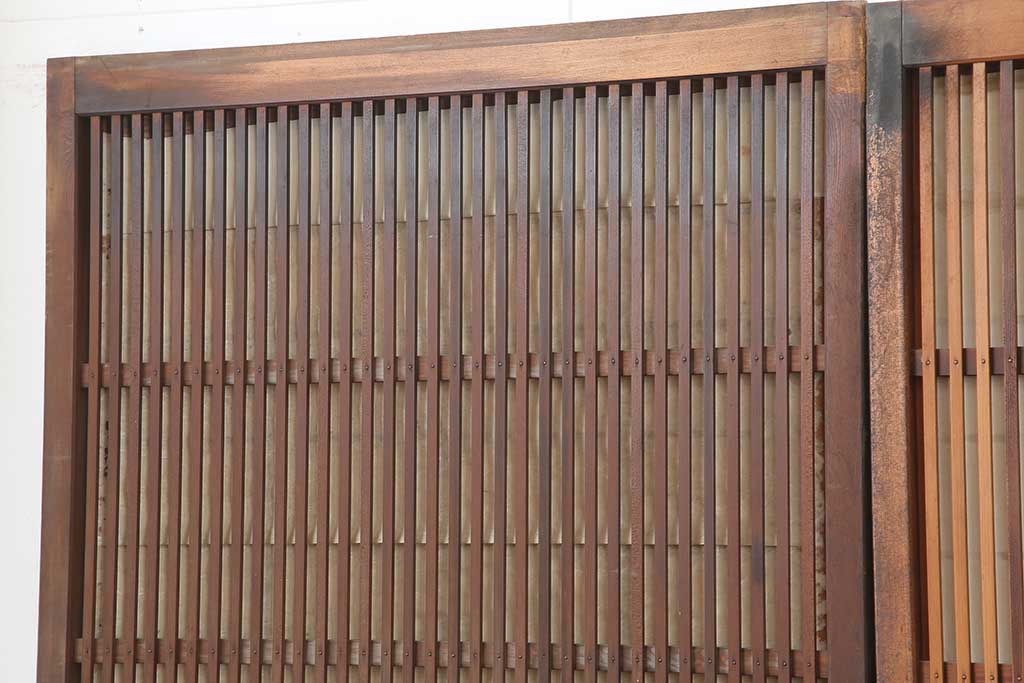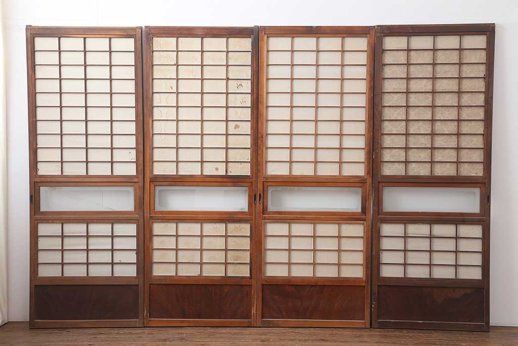 ドア・建具> 板戸・帯戸 > アンティーク建具 昭和初期 腰板ケヤキ材 裏障子付き 格子戸4枚セット(帯ガラス戸、引き戸、建具)(R-044260)