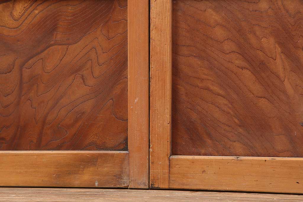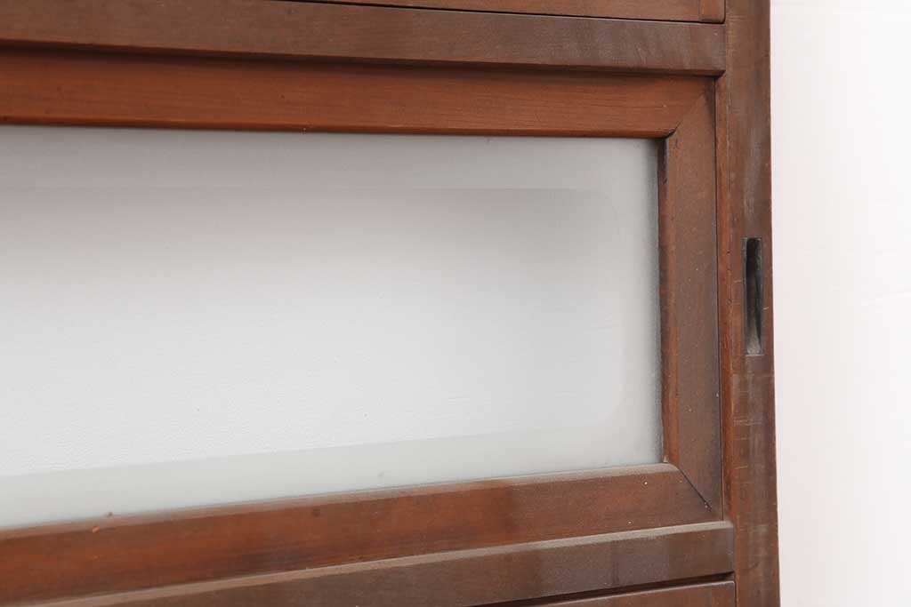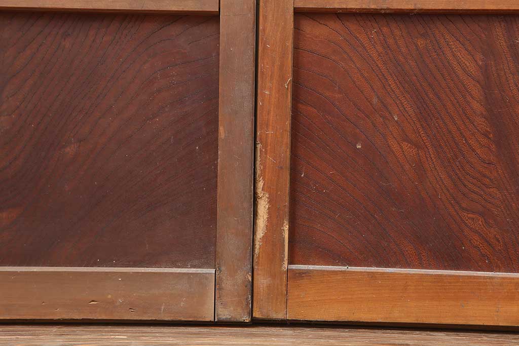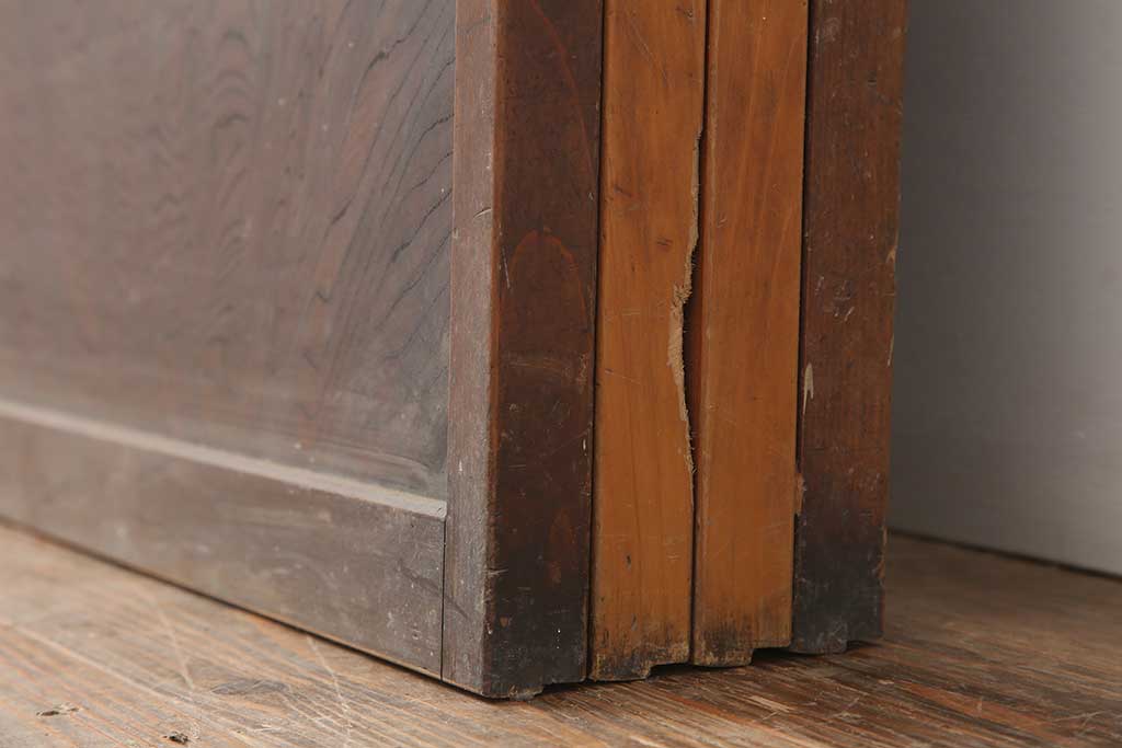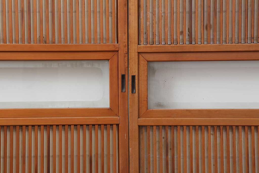 ドア・建具> 引き戸 > アンティーク建具 昭和初期 腰板ケヤキ材 裏障子付き 格子戸4枚セット(帯ガラス戸、引き戸、建具)(R-044260)