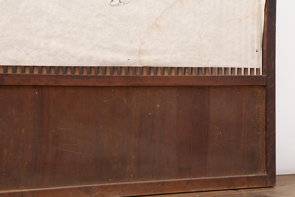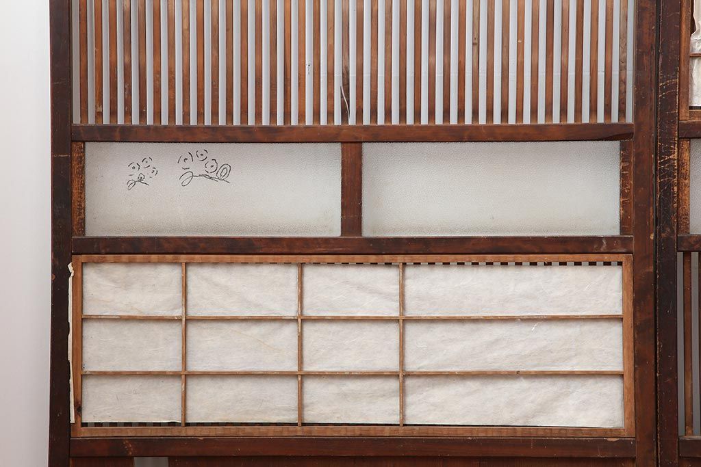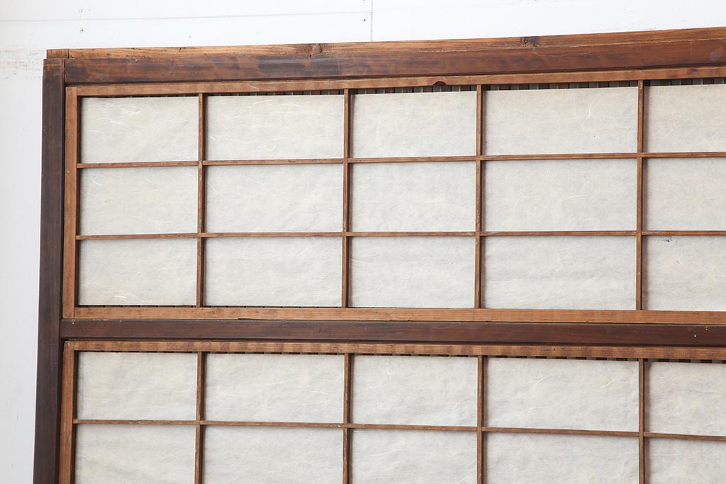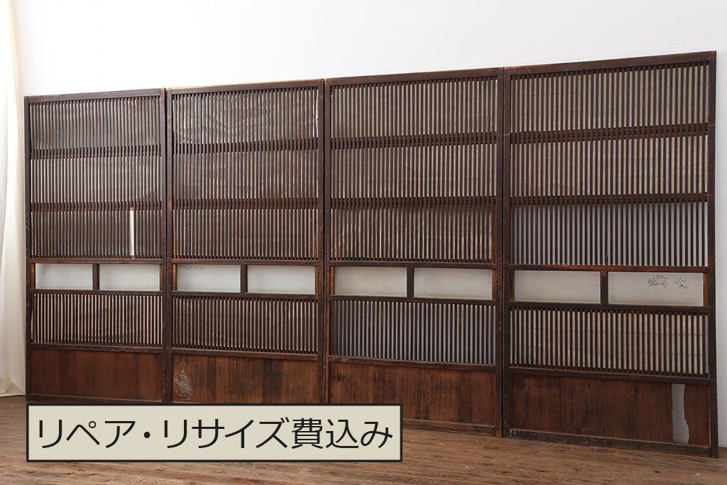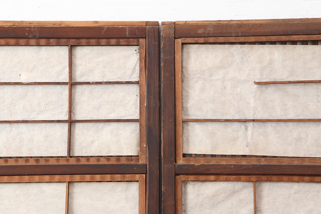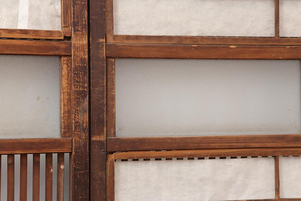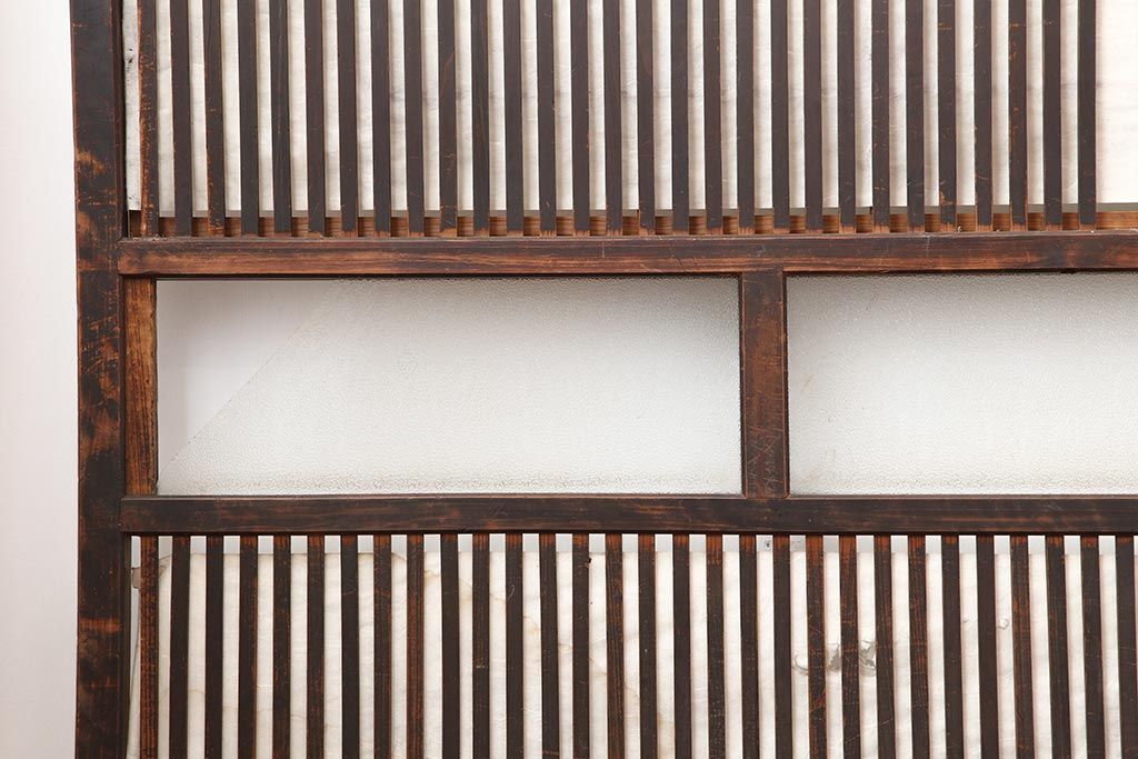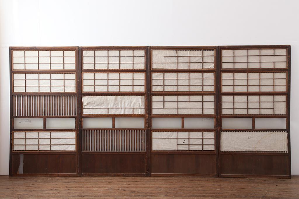 アンティーク建具 和製アンティーク 大正期 裏障子付き いぶされたような色合いが味わい深い格子戸4枚セット(ガラス帯戸、格子帯戸、引き戸、建具)(R-044286)